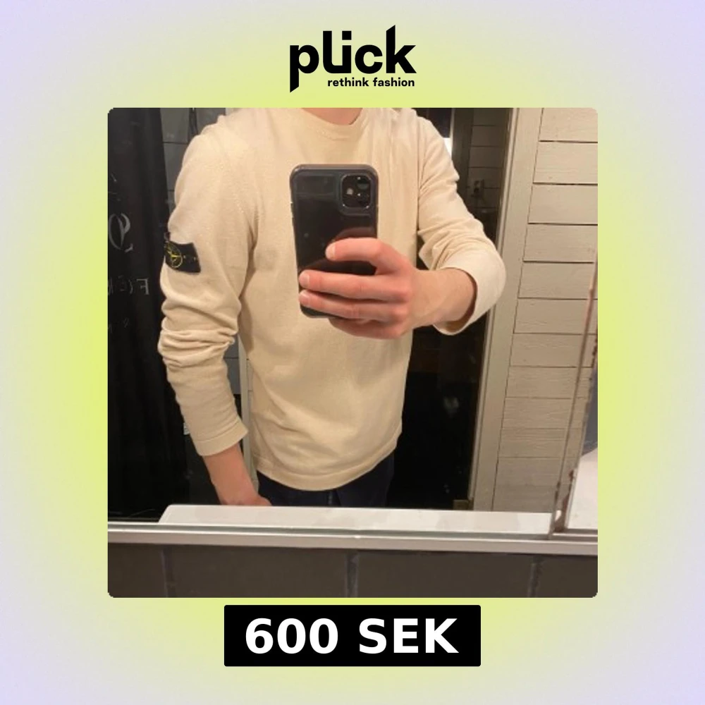 Säljer en stilren beige långärmad tröja från Stone Island med klassisk patch. Storlek L, passar även M. Helt äkta.