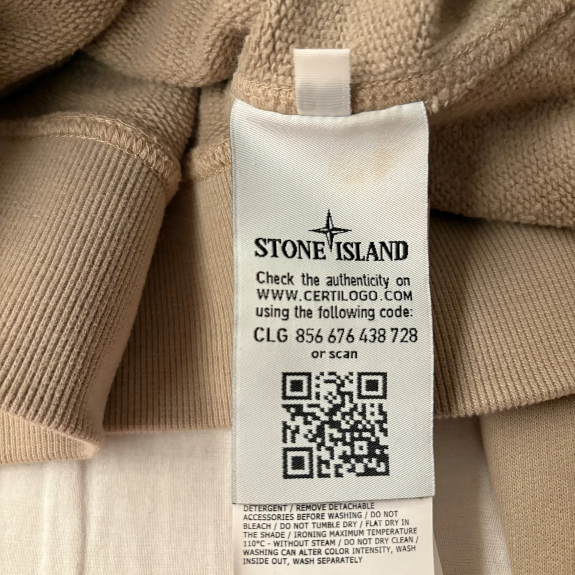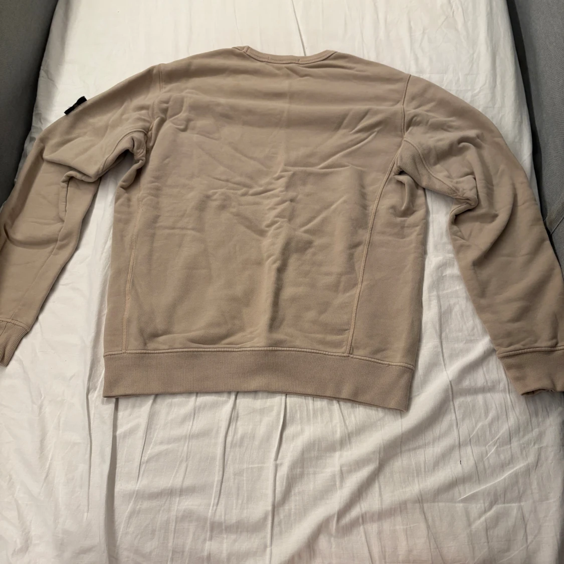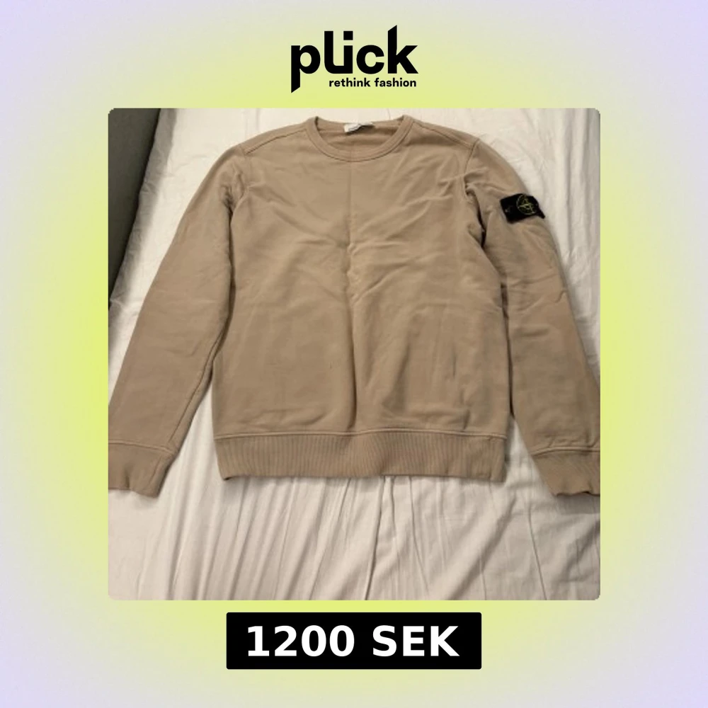 Säljer en beige sweatshirt från Stone Island med klassisk rund krage. Tröjan har Stone Island-loggan på vänster ärm. Perfekt basic med snygg passform och stilren look.