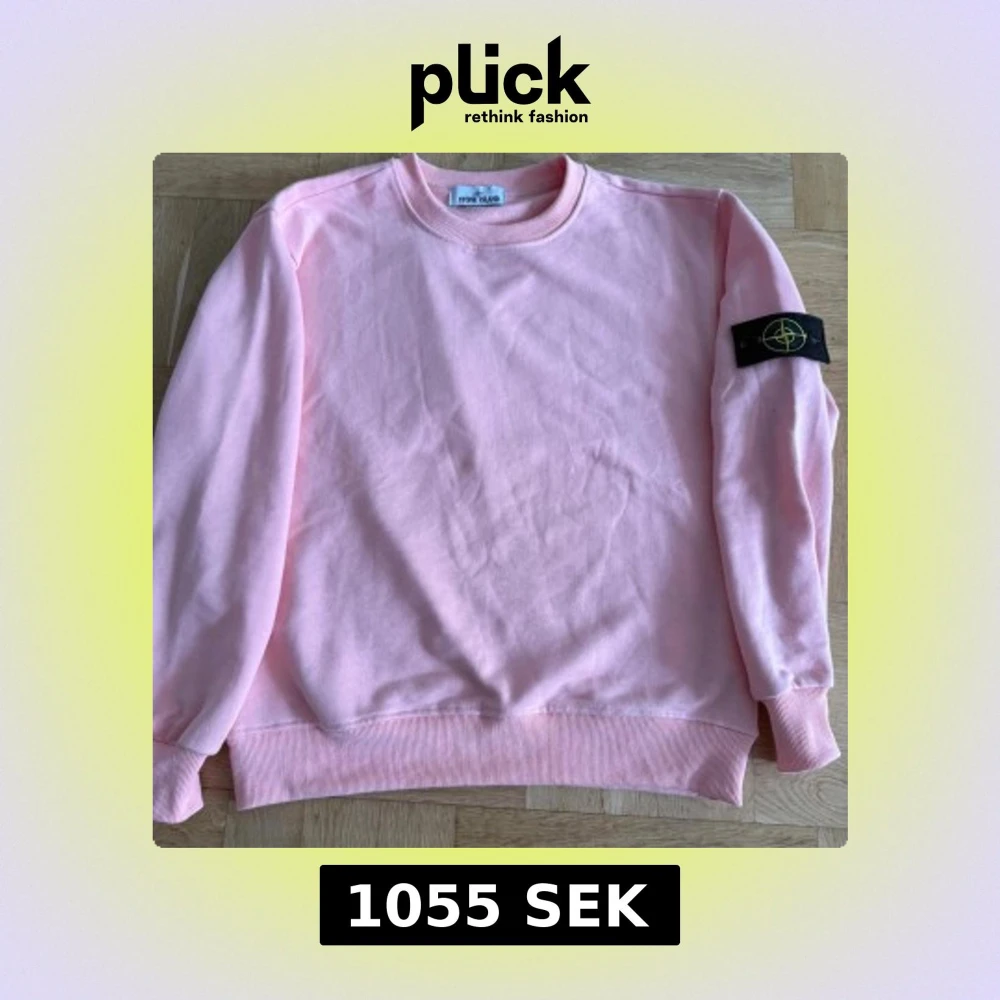 Säljer en ljusrosa sweatshirt från Stone Island med klassisk logga på ärmen. Tröjan har rund halsringning, ribbade muddar och är tillverkad i mjuk bomull. Perfekt för dig som gillar streetwear och vill sticka ut med en snygg färg.