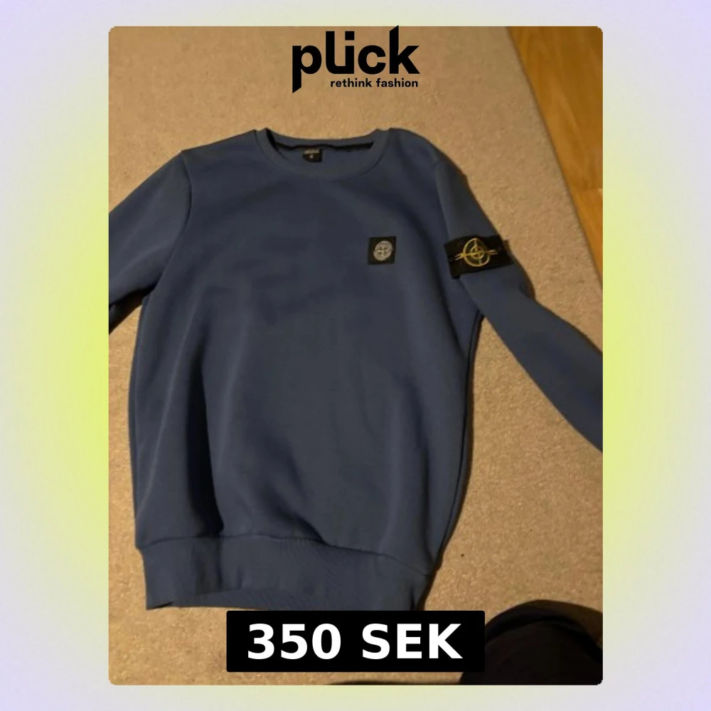 Säljer en blå crewneck sweatshirt från Stone Island med klassisk patch på vänster ärm och logga på bröstet. Tröjan har rund hals, ribbade muddar och är tillverkad i mjuk bomull. Perfekt för dig som gillar streetwear och vill ha något stilrent.pris diskuteras