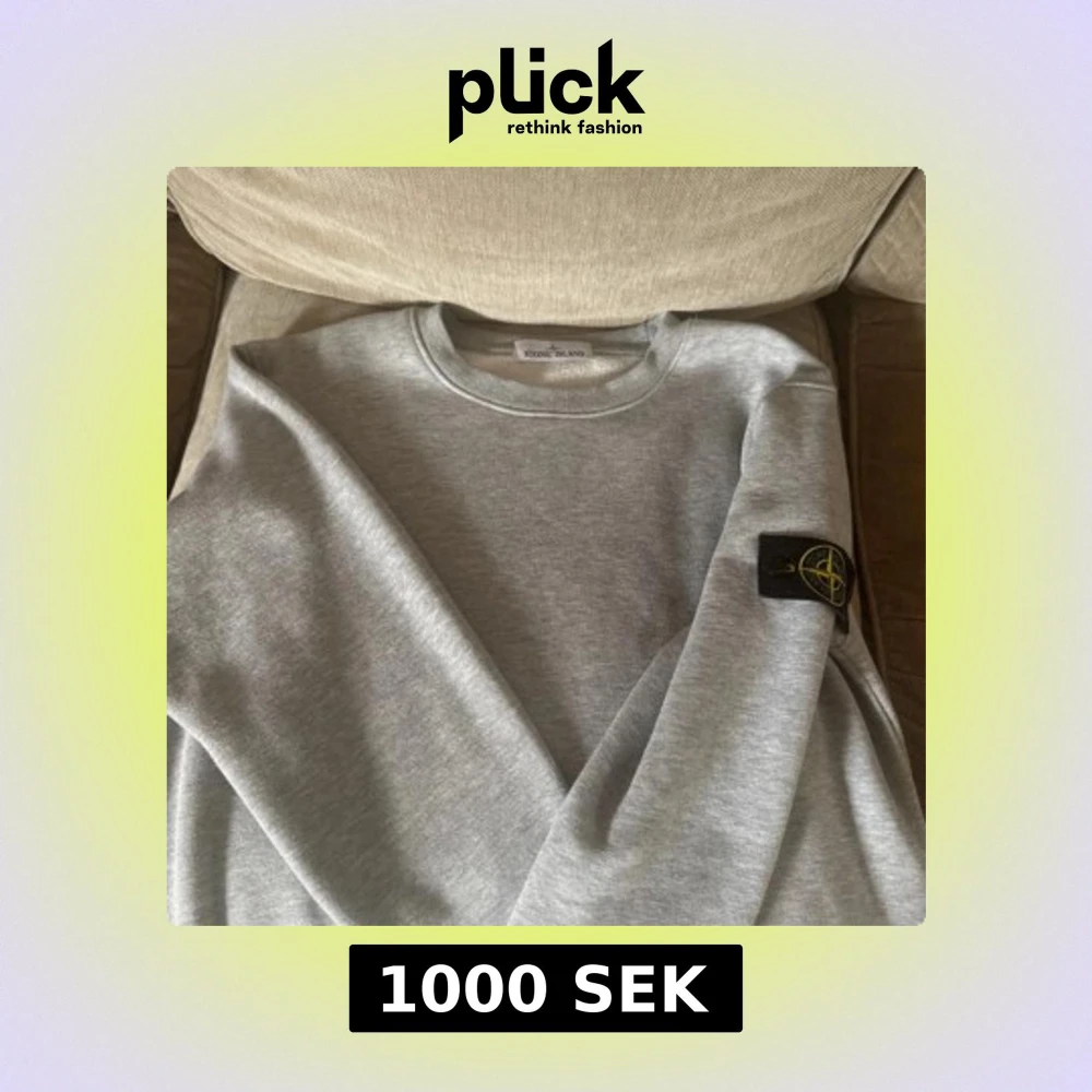 Snygg grå sweatshirt från Stone Island med klassisk rund hals och ikonisk logotyp-patch på ärmen. Tröjan är i mjuk bomull och har en clean look som passar perfekt till jeans eller joggers. Perfekt för dig som gillar streetwear och stilren design. Storlek M, typ aldrig använd.