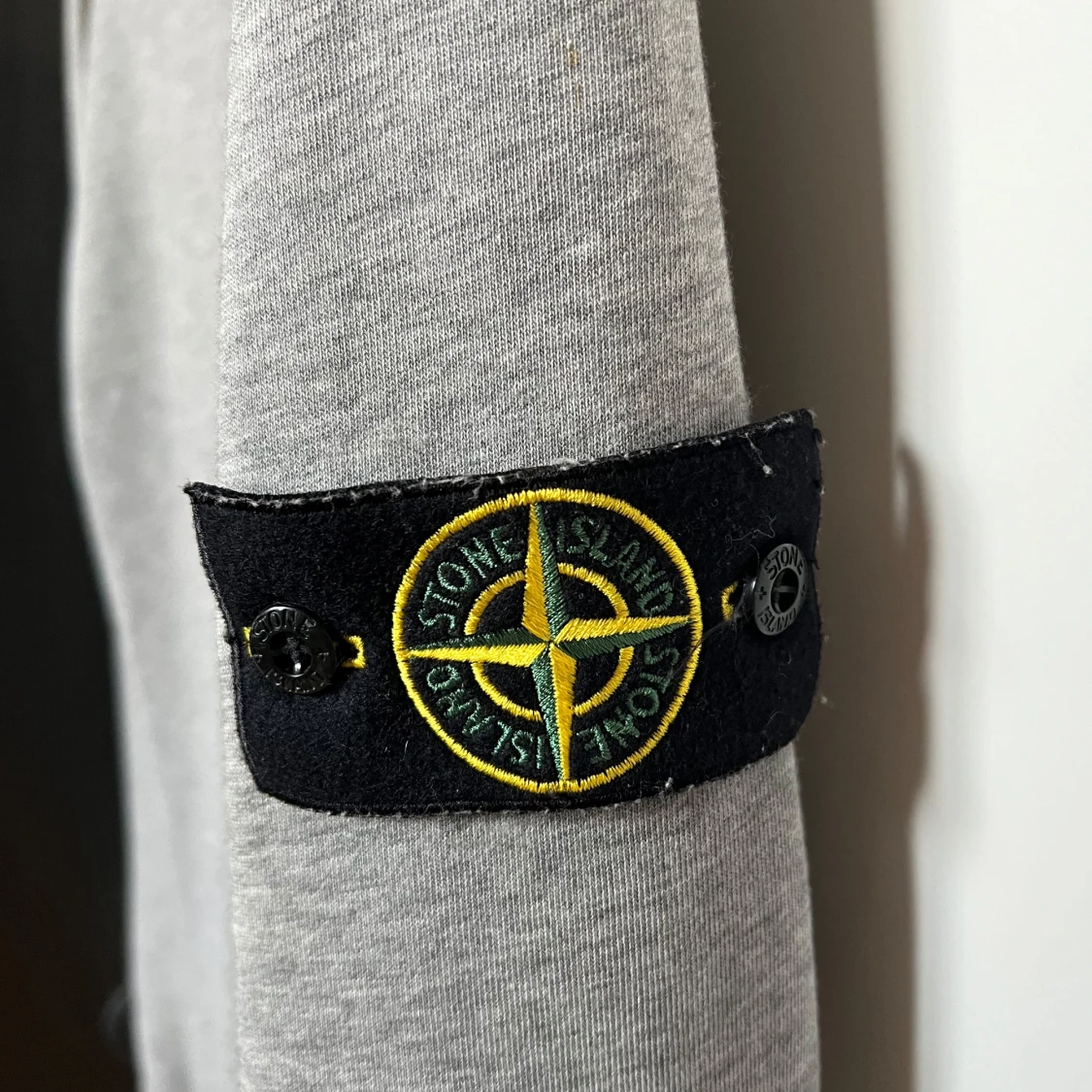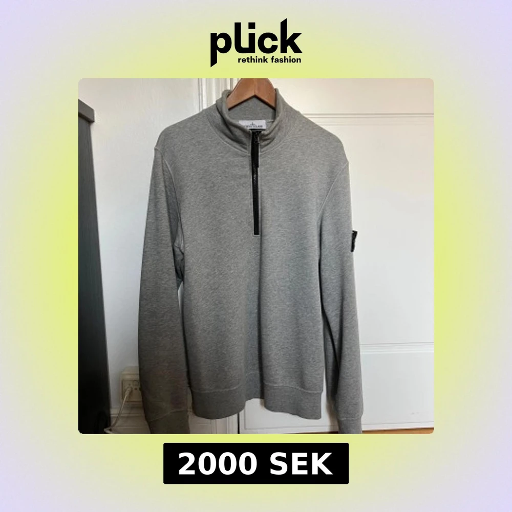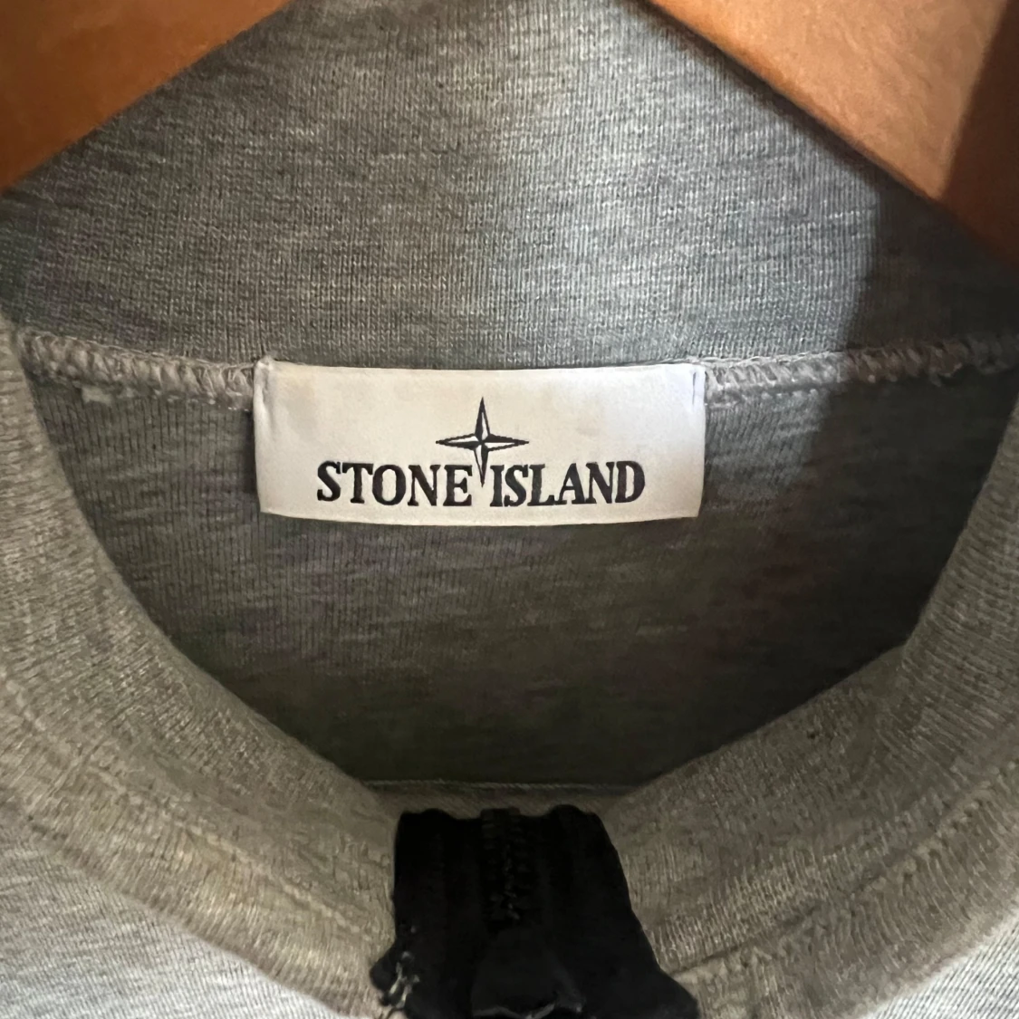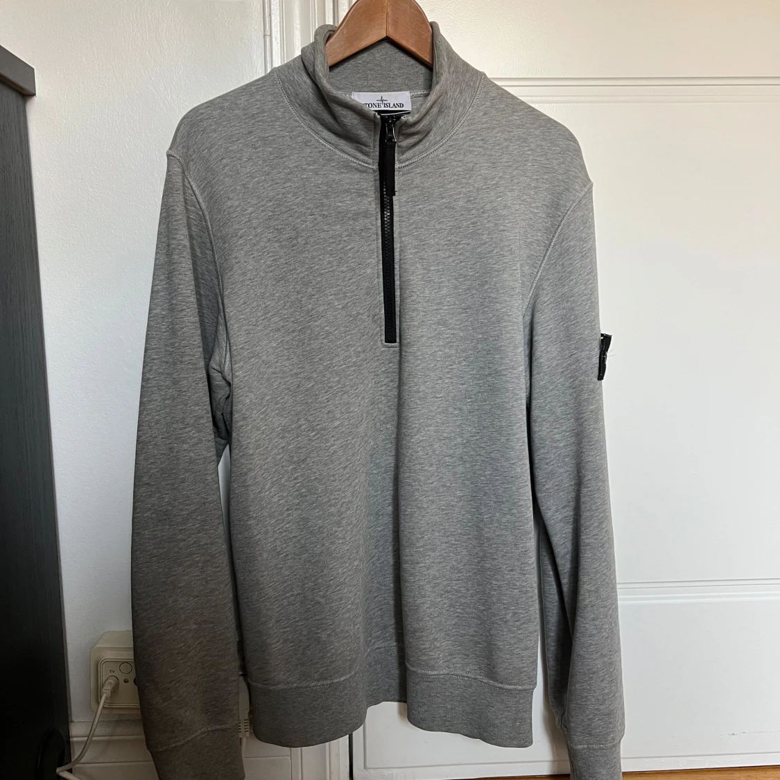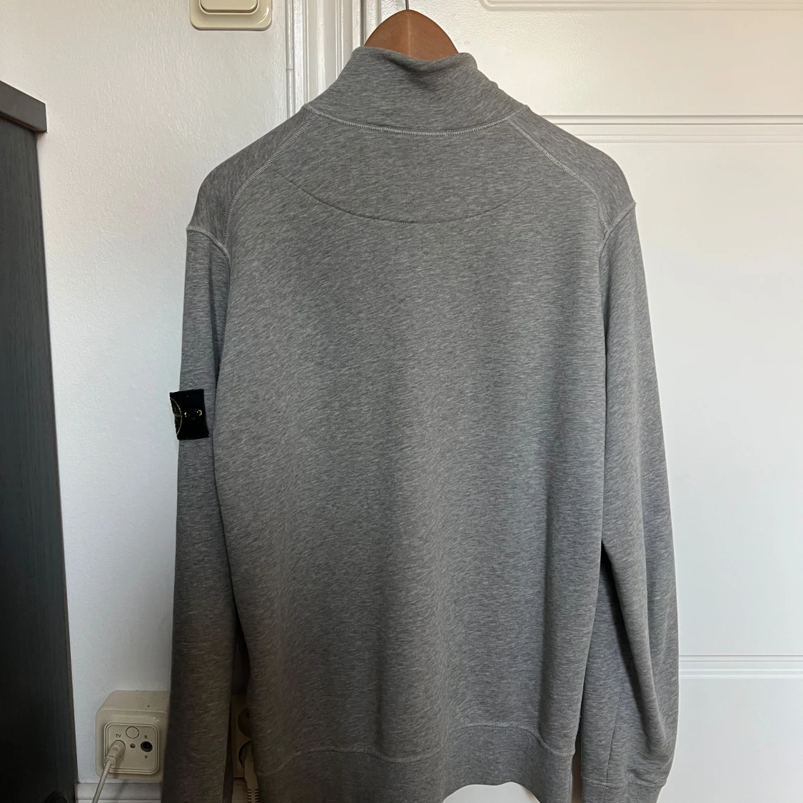 Snygg grå långärmad tröja från Stone Island med svart half zip-dragkedja och klassisk patch på ärmen. Tröjan har en hög krage och är gjord i mjuk bomull, perfekt för lager-på-lager. Enkel och stilren design som funkar till det mesta.