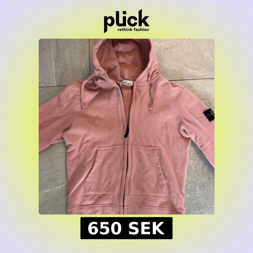 Säljer en rosa hoodie från Stone Island med dragkedja och klassisk logga på ärmen. Tröjan har huva med snörning och två stora fickor framtill. Perfekt för en avslappnad och stilren look.