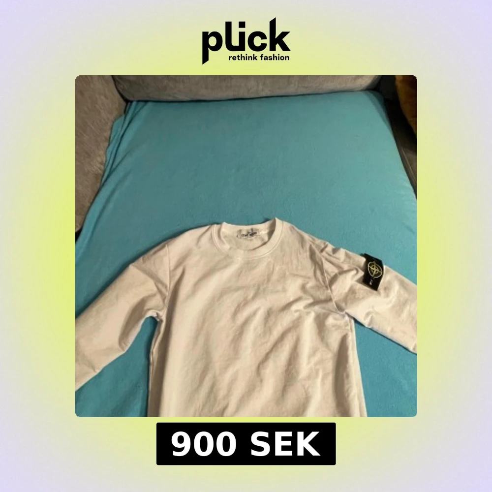 Säljer en stilren vit t-shirt från Stone Island med deras ikoniska märke på ärmen. T-shirten har en klassisk rund hals och är kortärmad. Perfekt för en avslappnad och trendig look.