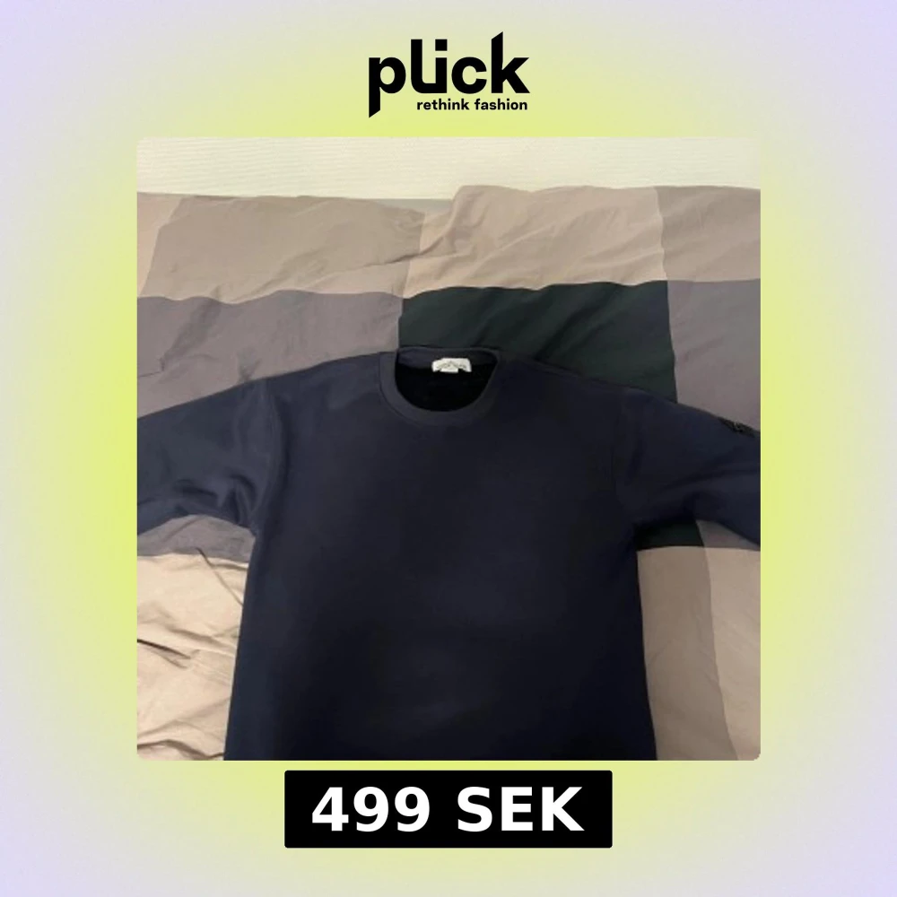 Snygg mörkblå sweatshirt från Stone Island med klassisk rund hals och långärmad design. Tröjan har den ikoniska Stone Island-patchen på vänster ärm och är tillverkad i mjuk bomull för skön komfort. Perfekt för dig som gillar stilrena och trendiga plagg. Storlek M, inga defekter eller sådant!