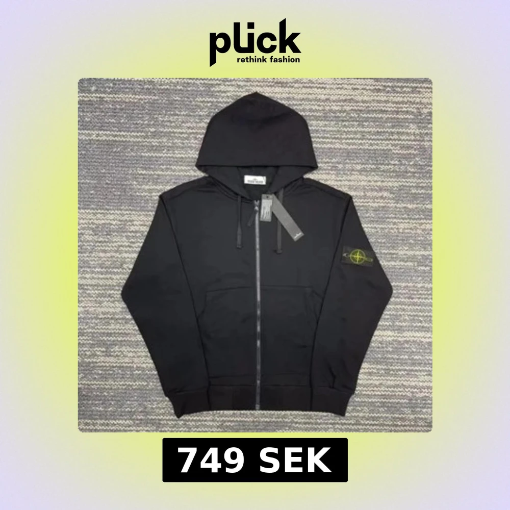 Svart hoodie från Stone Island med dragkedja och huva. Klassisk logotyp-patch på vänster ärm i gult och grönt. Tröjan har långa ärmar, ribbade muddar och snörning vid huvan. Tillverkad i mjuk bomull, perfekt för chill och streetwear.