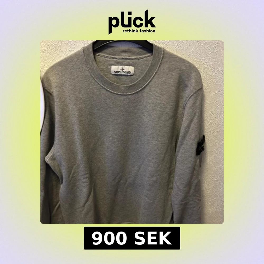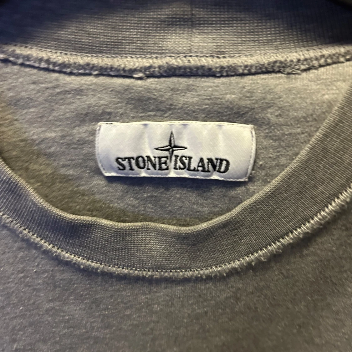 Säljer en stilren grå tröja från Stone Island. Tröjan har långa ärmar och en rund halsringning. Perfekt för en avslappnad stil med den ikoniska loggan på ärmen.