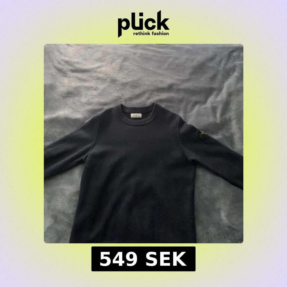 Snygg mörkblå stickad tröja från Stone Island. Perfekt för dig som gillar stilrena och exklusiva plagg!