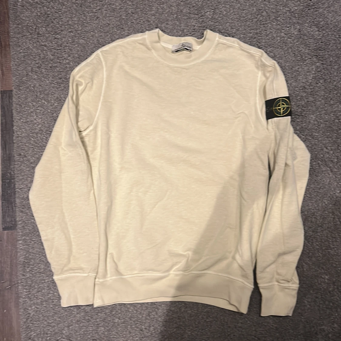 Säljer en stilren beige tröja från Stone Island. Har aldrig kommit till användning då jag fick den som en gåva. Den är lite stor på mig och storleken är M. om ni är sugna är det bara höra av er.
