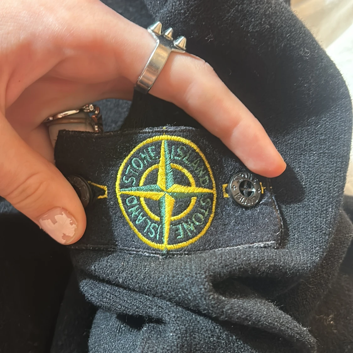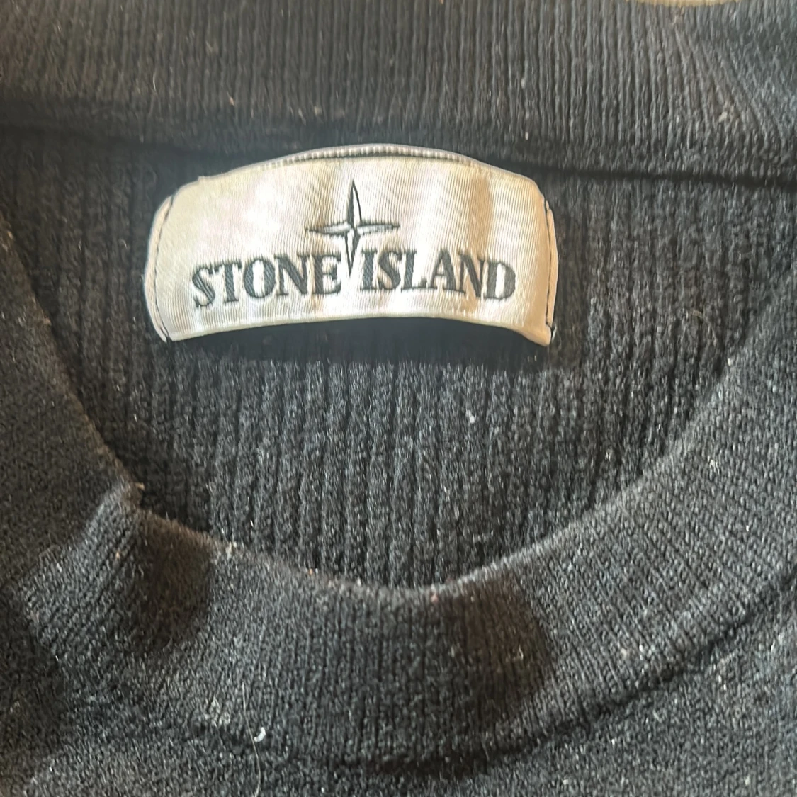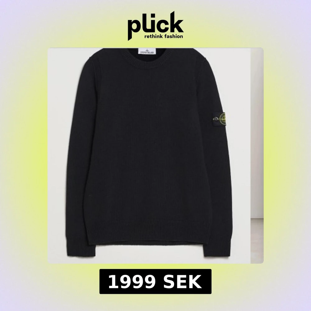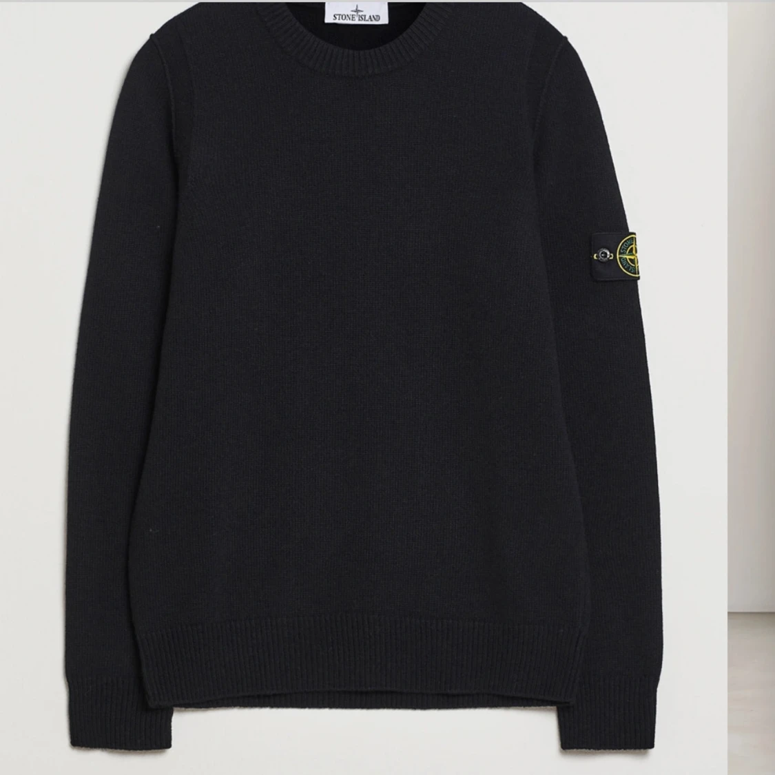 Svart stickad tröja från Stone Island med klassisk rund hals och ribbade muddar. Tröjan har den ikoniska loggan på vänster ärm som går att ta av med knappar. Perfekt för dig som gillar stilren och clean streetwear.Ny pris 3999kr