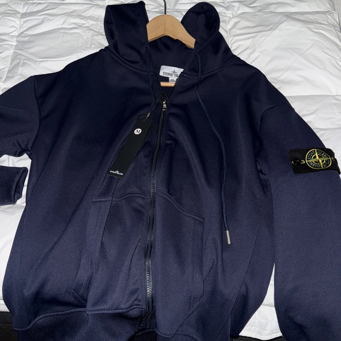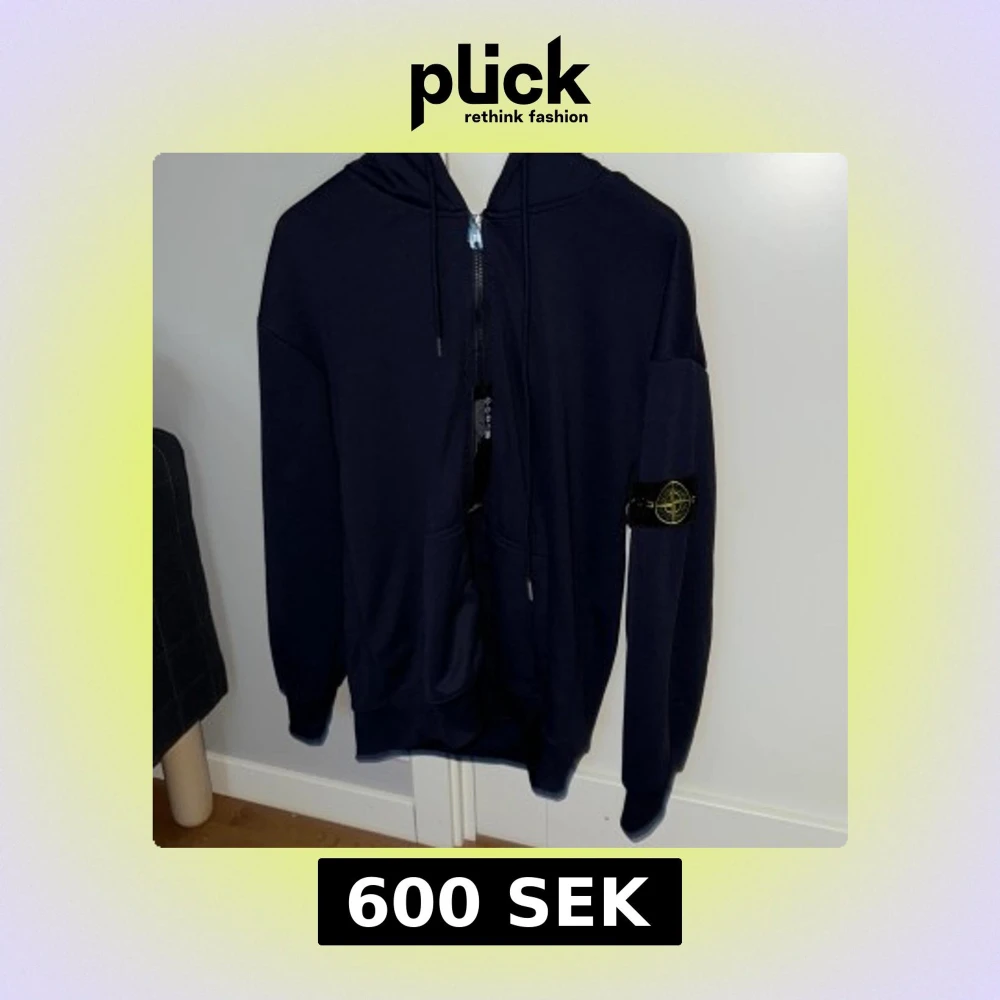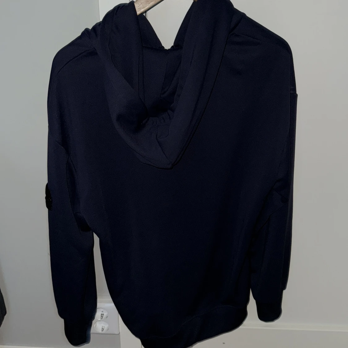 Säljer en mörkblå hoodie från Stone Island med dragkedja, huva och klassisk logga på ärmen. Helt oanvänd, skriv vid frågor eller funderingar, pris kan diskuteras