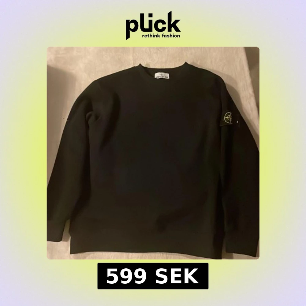 Säljer en stilren svart tröja från Stone Island med deras ikoniska märke på ärmen. Tröjan har en klassisk rund hals och långa ärmar, perfekt för en avslappnad look. Passar bra till både jeans och chinos. Barn M vilket passar bra för min son som är 155 och väger typ 45 kg