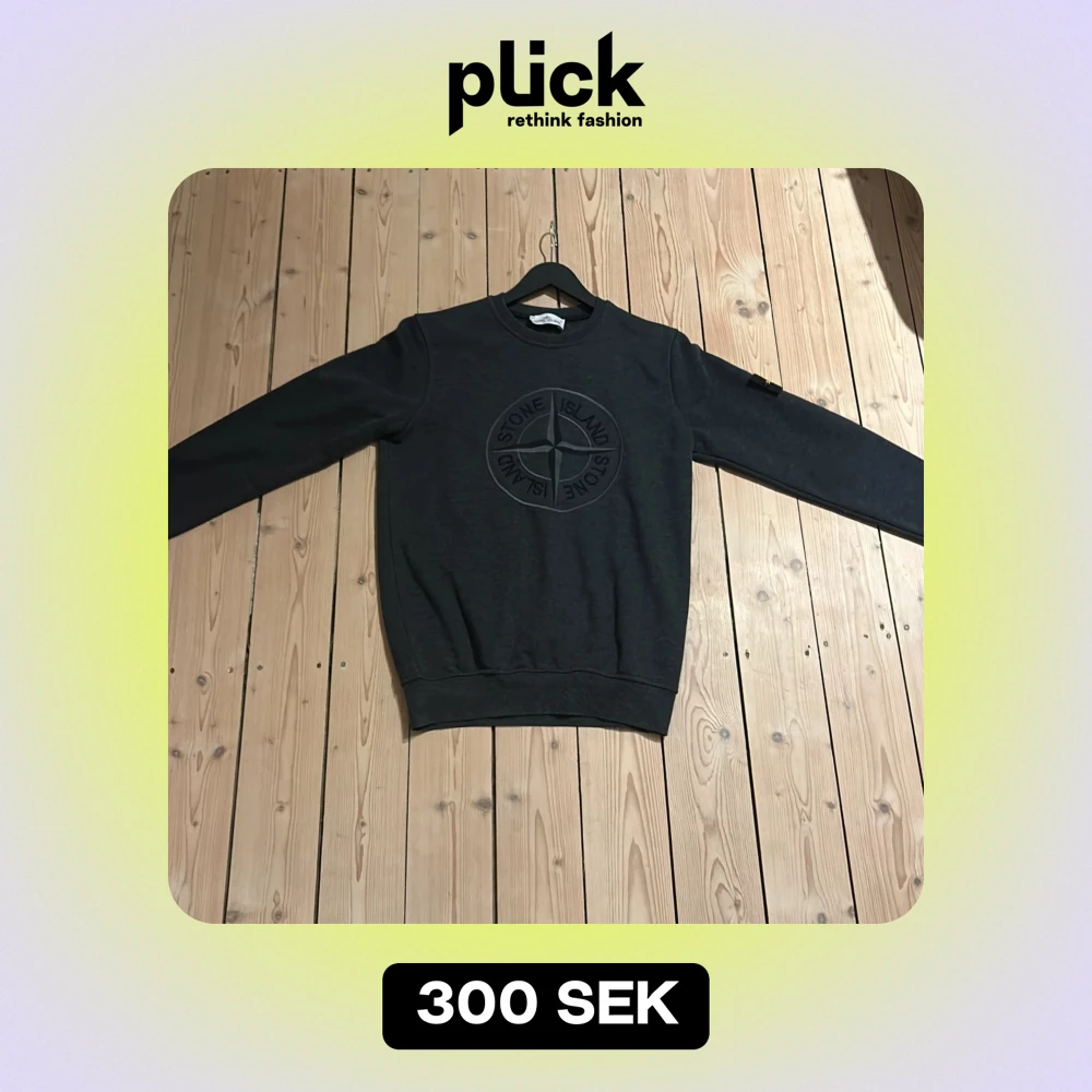 Säljer en snygg mörkgrå sweatshirt från Stone Island i mycket bra skick. Tröjan har en rund halsringning och det ikoniska Stone Island-märket på ärmen. Perfekt för höst och vår, och passar både till vardags och lite mer avslappnade tillfällen. Strlk M passar också S
