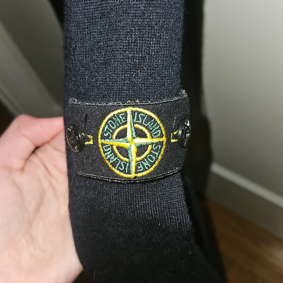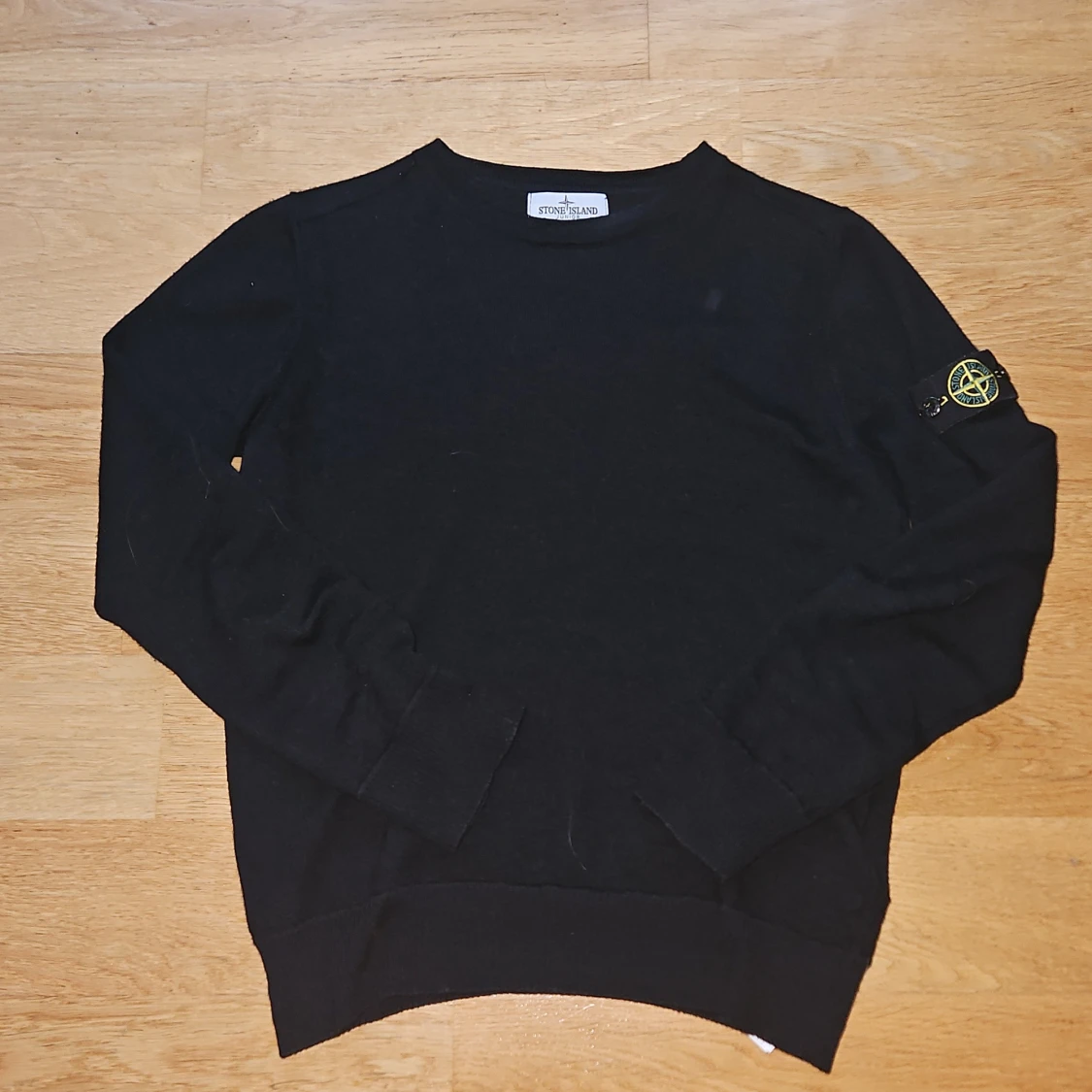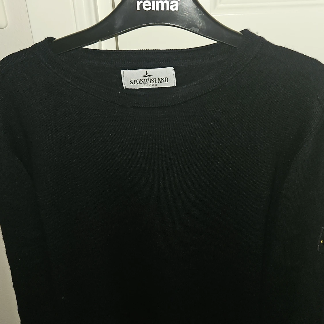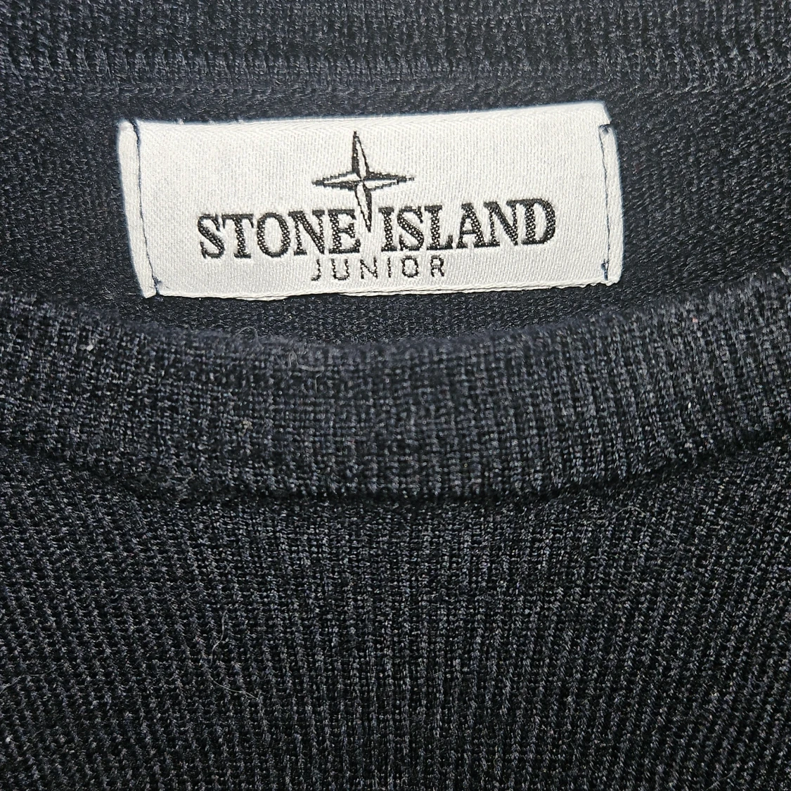 Mörkblå stickad tröja från Stone Island Junior med klassisk rund hals och ikonisk logga på ärmen. Tröjan har lång ärm och är tillverkad i mjukt material som passar perfekt till höst och vinter. Enkel och stilren design som funkar till allt.