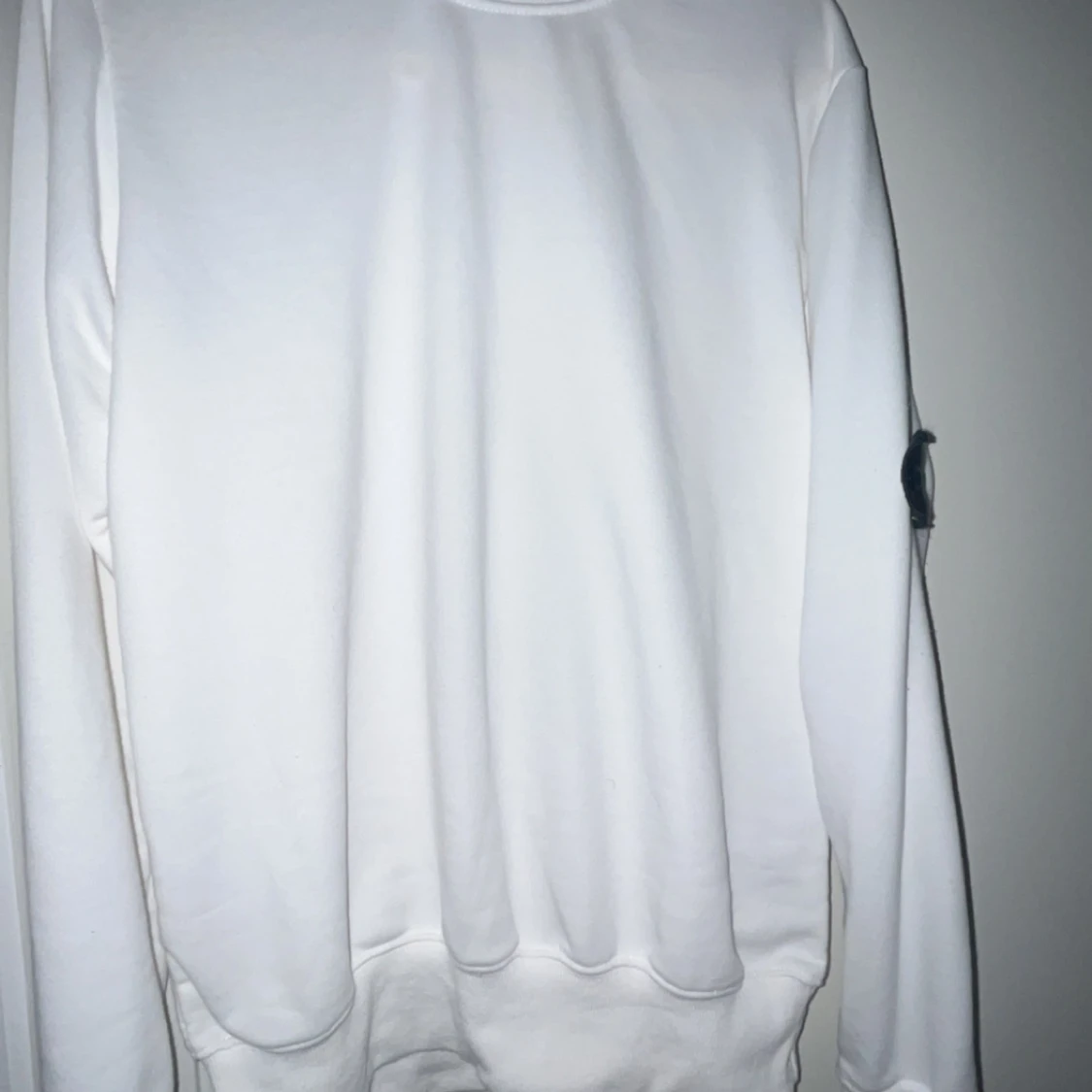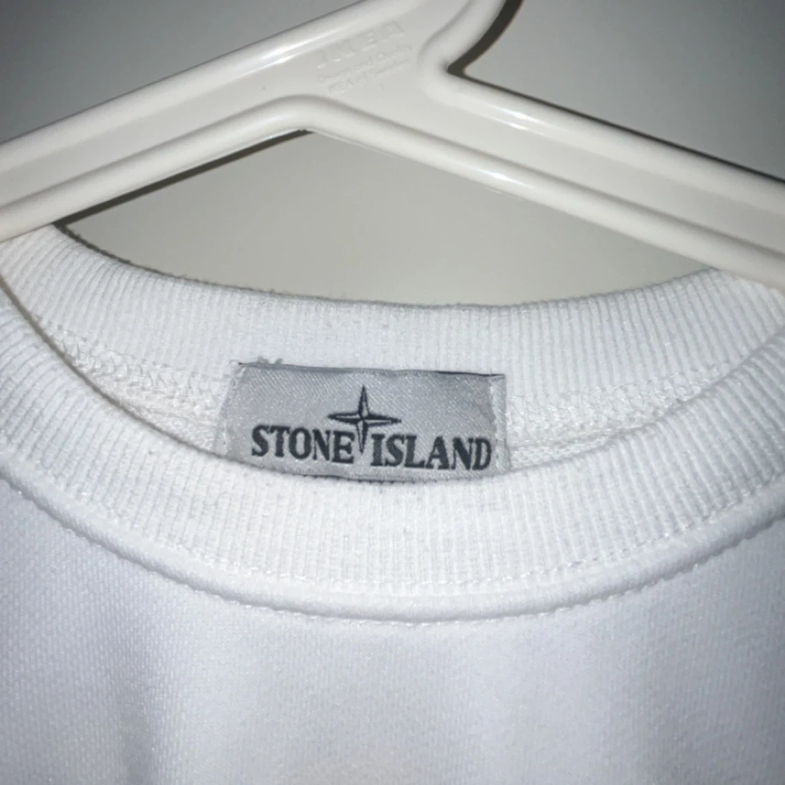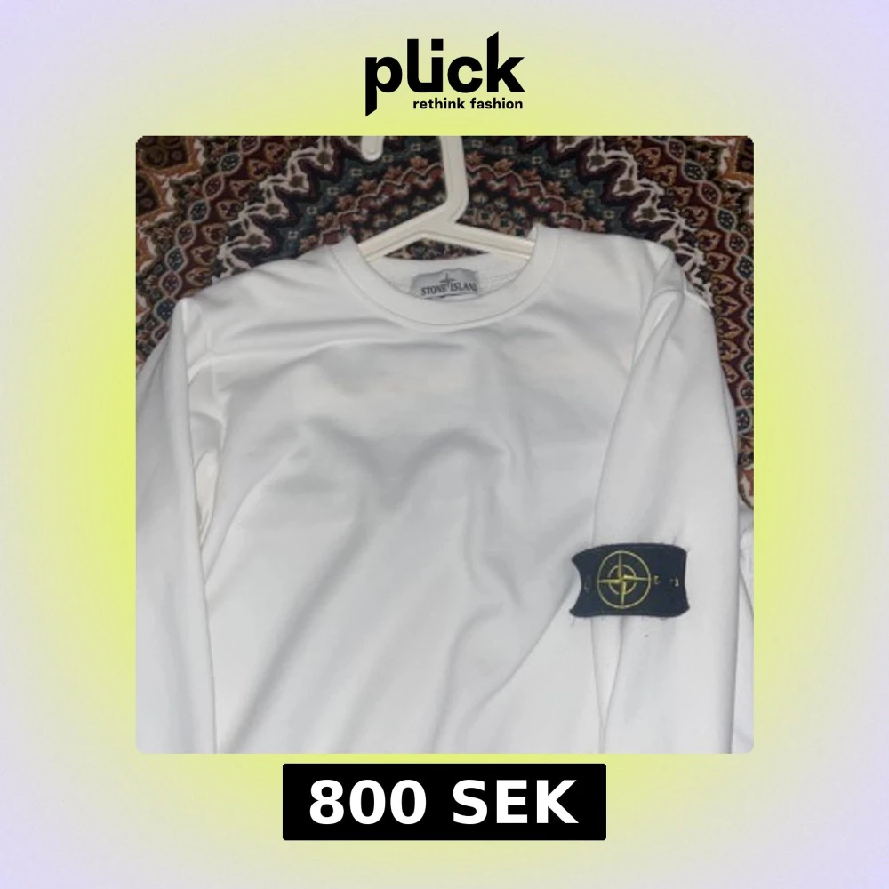 Vit långärmad tröja från Stone Island med klassisk rund hals och ikonisk patch på vänster ärm. Tröjan är i mjuk bomull och har en clean, stilren look som passar perfekt till streetwear eller casual outfits.