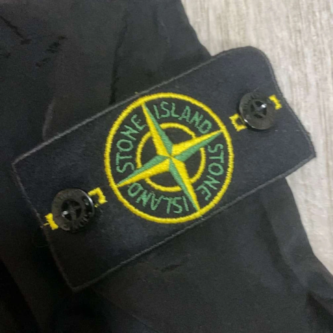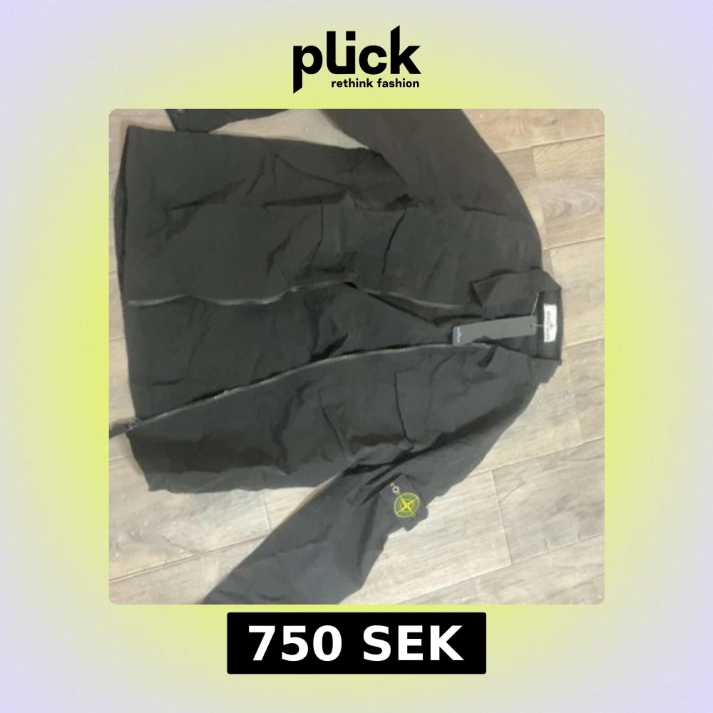 Snygg svart jacka från Stone Island med dragkedja och broderad logga på ärmen. Perfekt för en stilren look. Skriv för mer info och bilder!