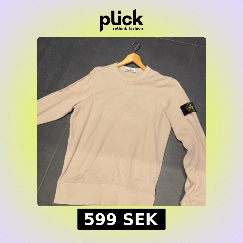 Snygg beige långärmad tröja från Stone Island med klassisk rund hals och ikonisk svart patch med logga på vänster. Pris kan diskuteras vid snabb affär