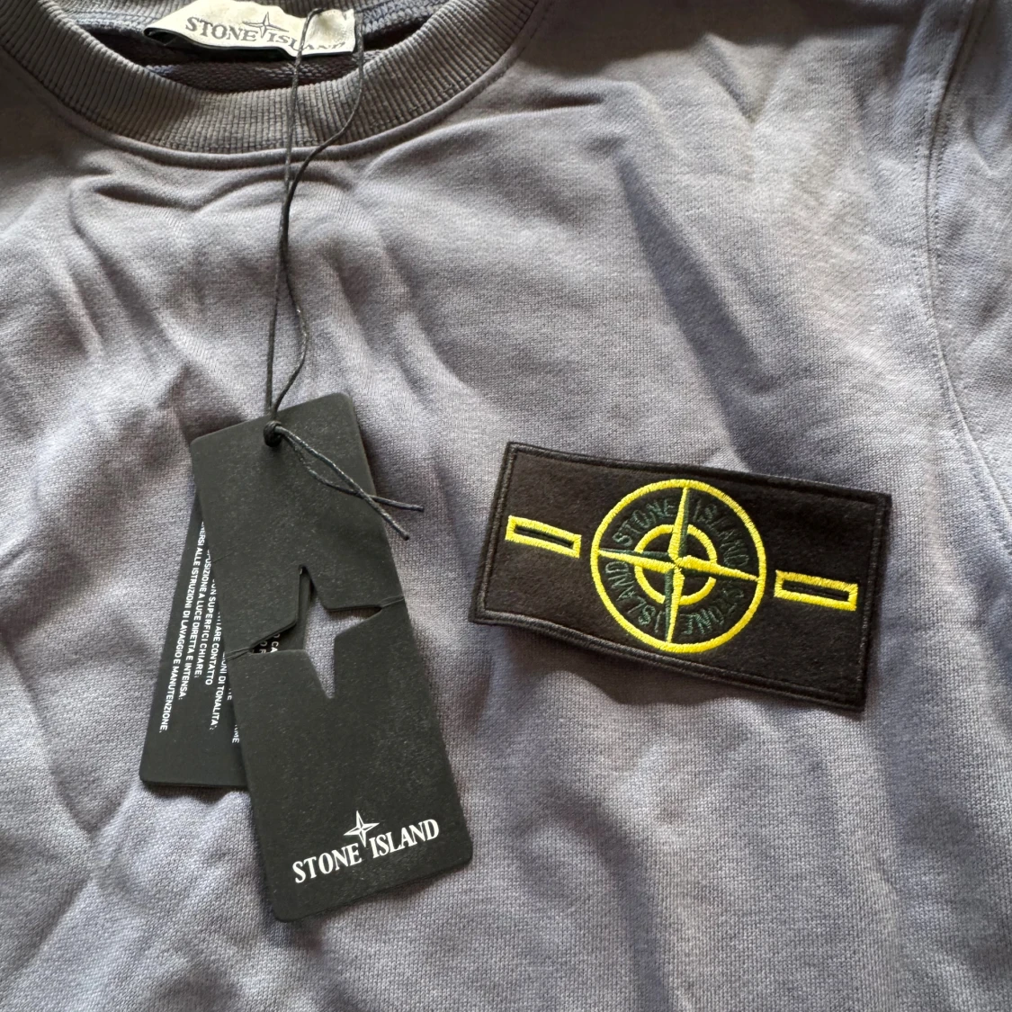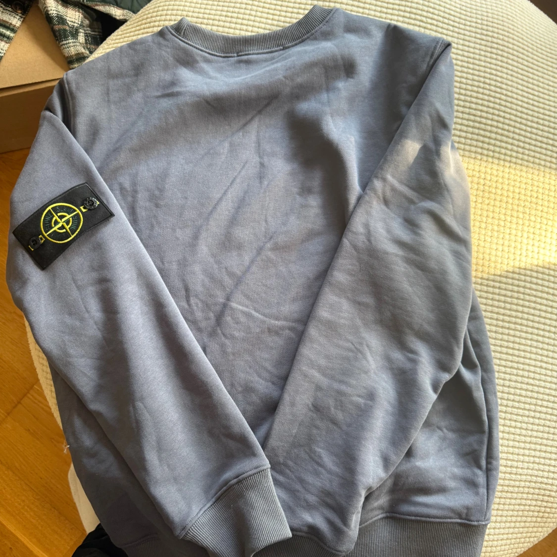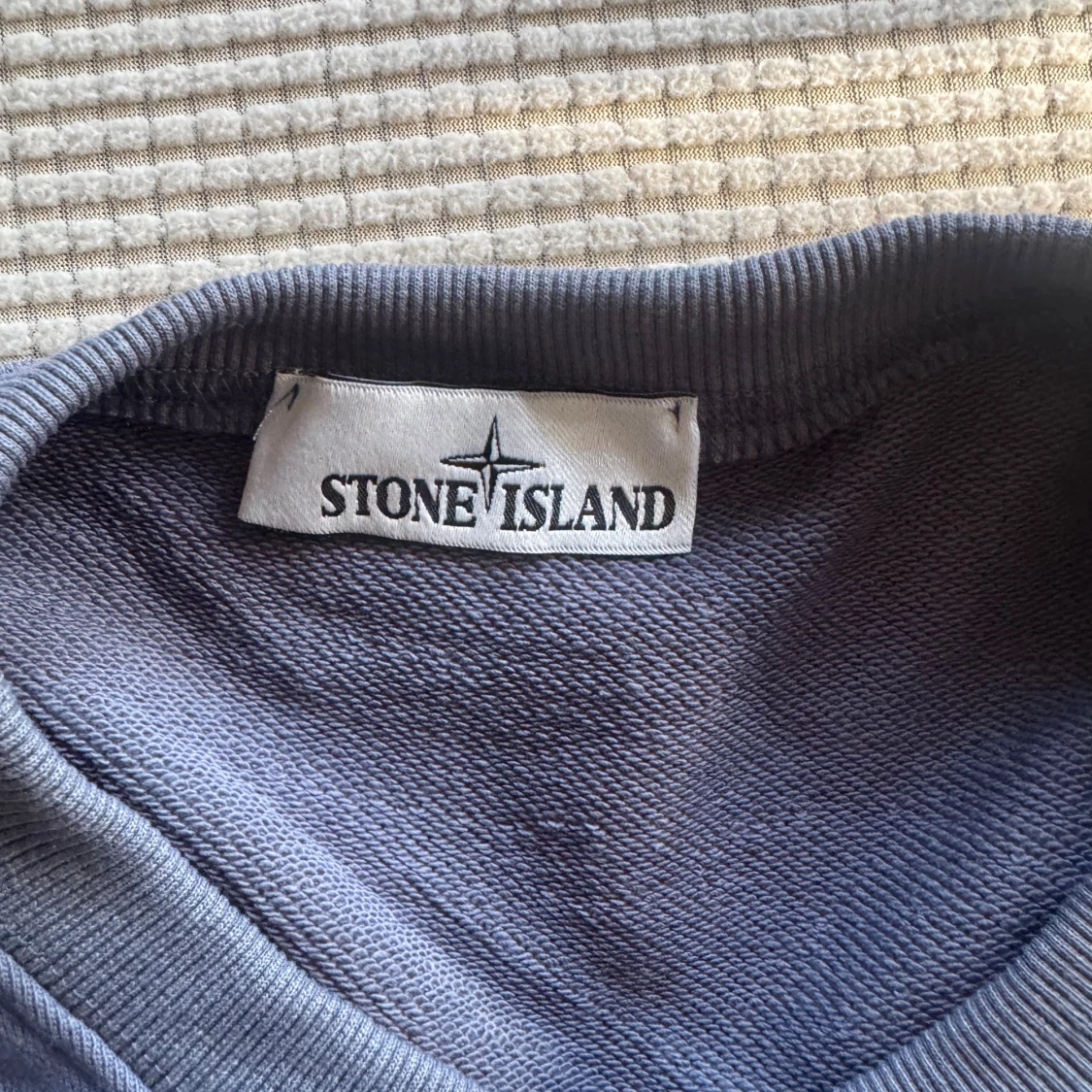 Säljer en stilren grå sweatshirt från Stone Island med klassisk logga på ärmen. Tröjan har rund hals, ribbade muddar och är tillverkad i mjuk bomull. Perfekt för dig som gillar streetwear och vill ha en clean look. Pris kan diskuteras