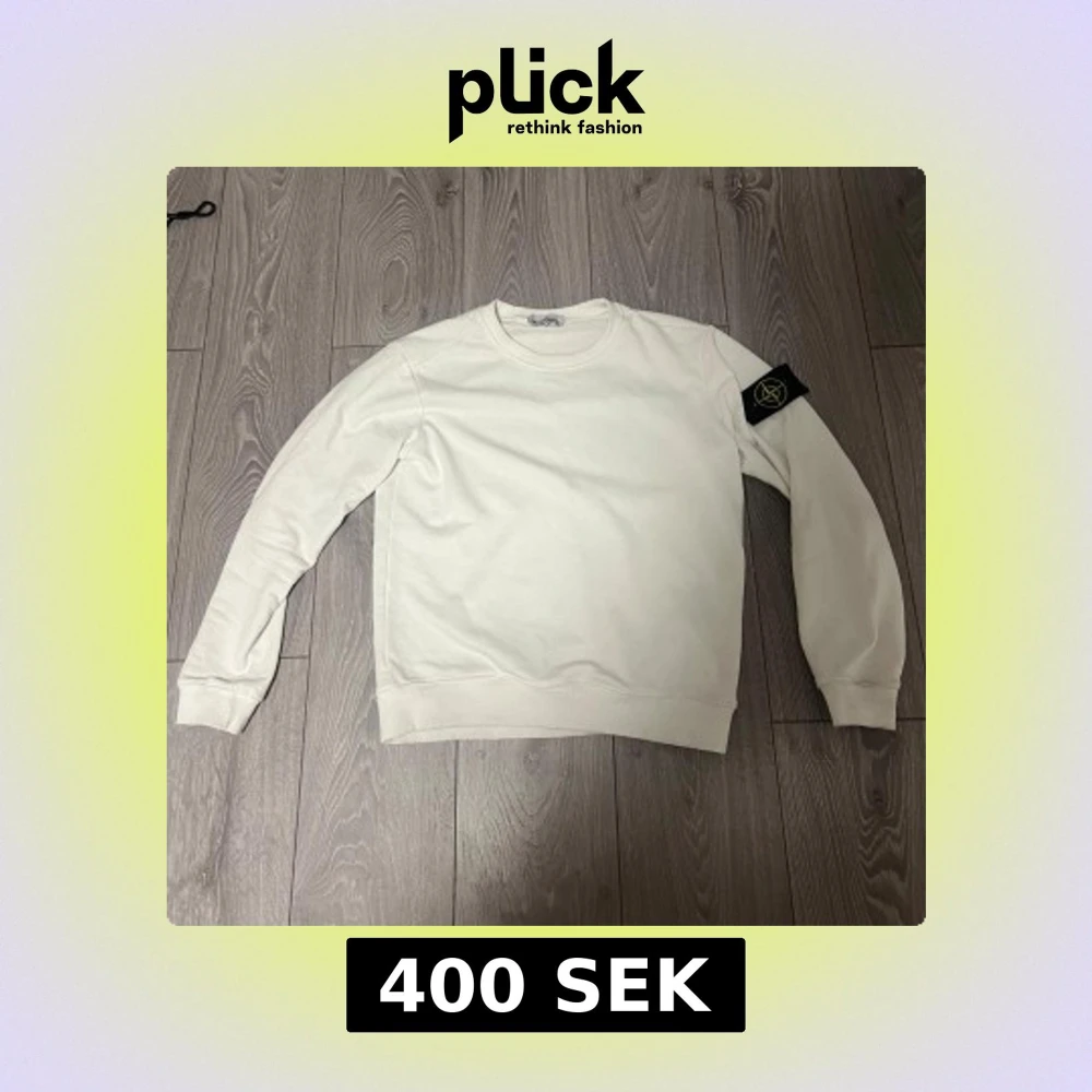 Säljer en stilren vit sweatshirt från Stone Island med klassisk rund hals och ribbade muddar. Tröjan har den ikoniska Stone Island-loggan på vänster ärm. Perfekt för dig som gillar enkel och clean streetwear. PASSFORM XS, FINNS ETT LITET FLÄCK I MITTEN. PRIS GÅR ATT DISKUTERA