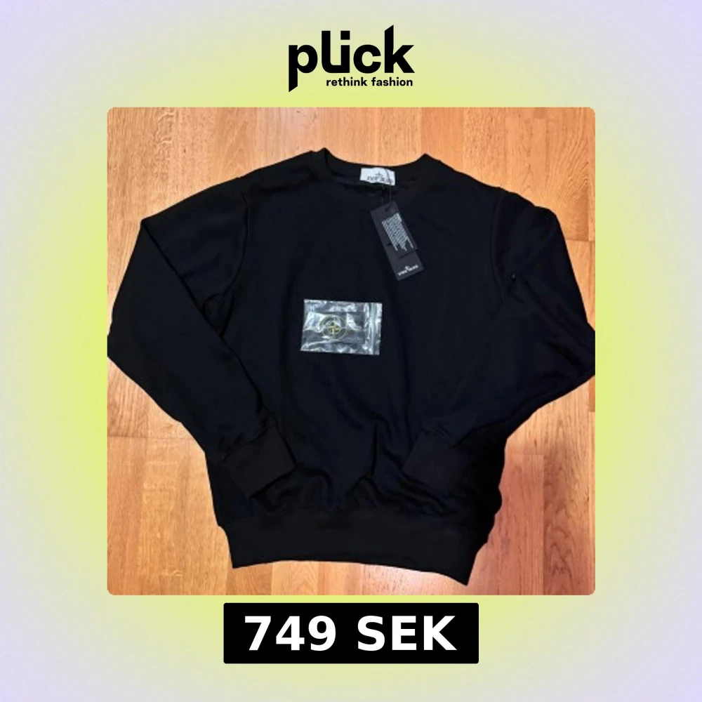 Svart sweatshirt från Stone Island med klassisk rund hals och ribbade muddar. Tröjan har avtagbart Stone Island-märke som fästs med knappar på ärmen. Tillverkad i mjuk bomull, perfekt för en clean och stilren look.