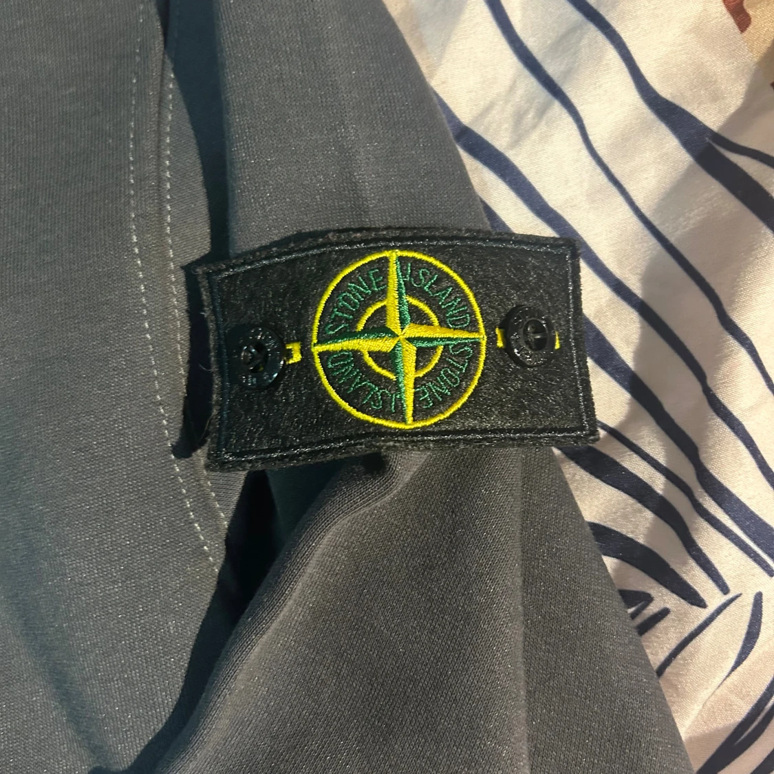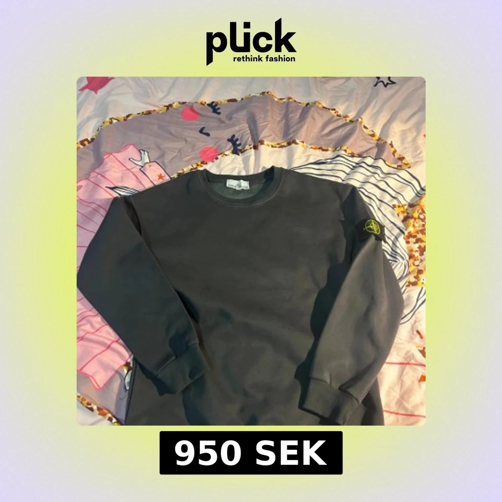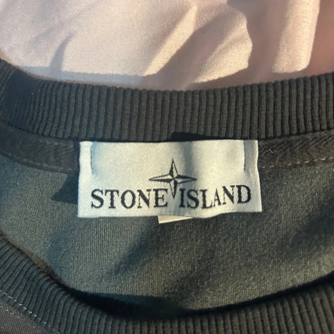 Säljer en grå sweatshirt från Stone Island med klassisk rund hals och ribbade muddar. Tröjan har den ikoniska Stone Island-loggan på vänster ärm. Perfekt basic med snygg streetkänsla.