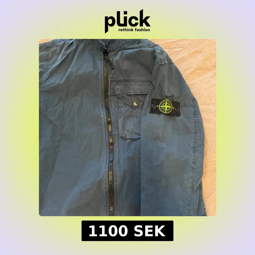 Snygg mörkblå vindjacka från Stone Island med klassisk patch på ärmen. Jackan har dragkedja framtill och en ficka med knapp på bröstet. Perfekt för dig som vill ha en clean overshirt.