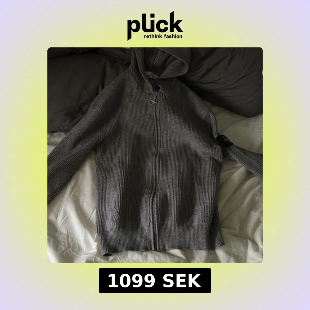 Riktigt snygg grå stickad hoodie från Stone Island.