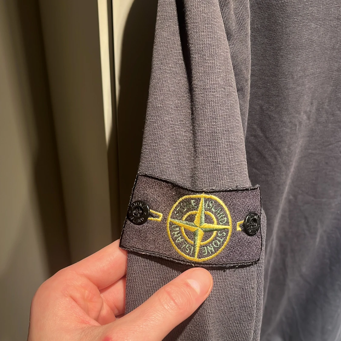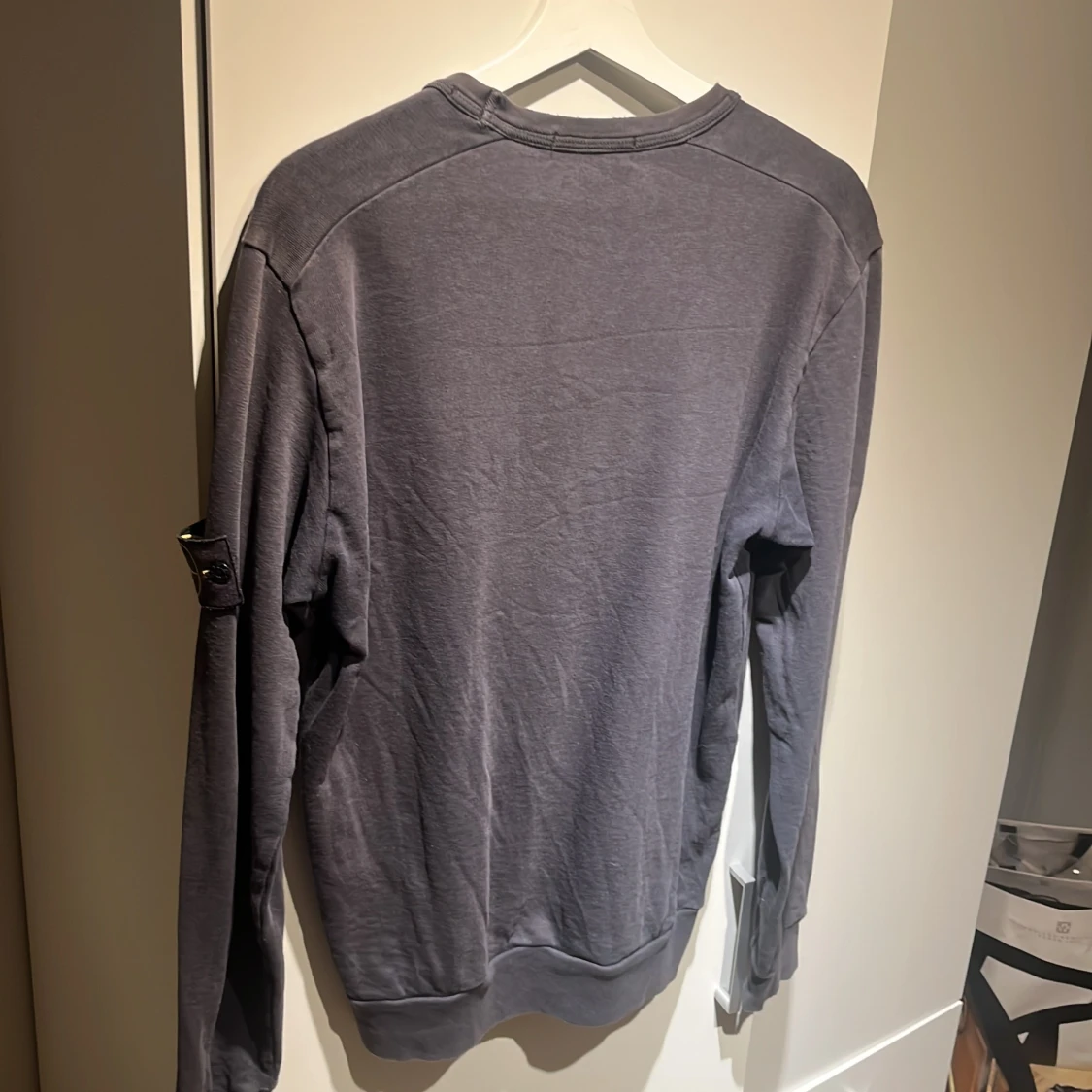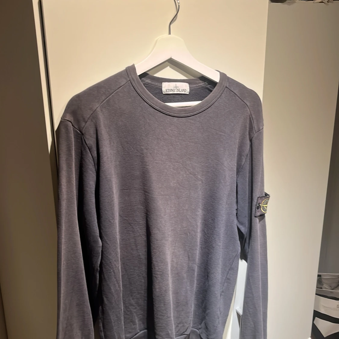Stone Island - Sweatshirt Crewneck - Marinblå Strl: M Har lite skador på vänstra armslutet (kan skicka bild), Patchen har tyvärr blivit tvättad i tvättmaskin ett fåtal gånger. Utöver det är den i okej skick! Kan lösa bättre bilder på patchen och QRkoden.