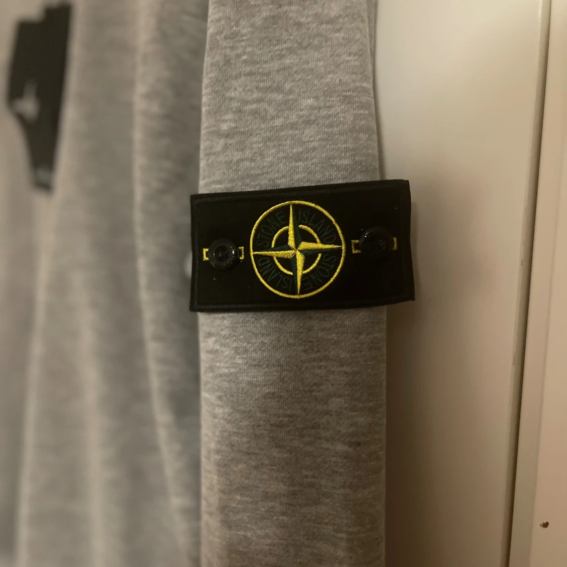Snygg grå sweatshirt från Stone Island med klassisk logga på ärmen. Tröjan har rund halsringning, långa ärmar och ribbade muddar. Tillverkad i mjuk bomull för en skön och avslappnad stil. Perfekt för dig som gillar streetwear och stilrena plagg.