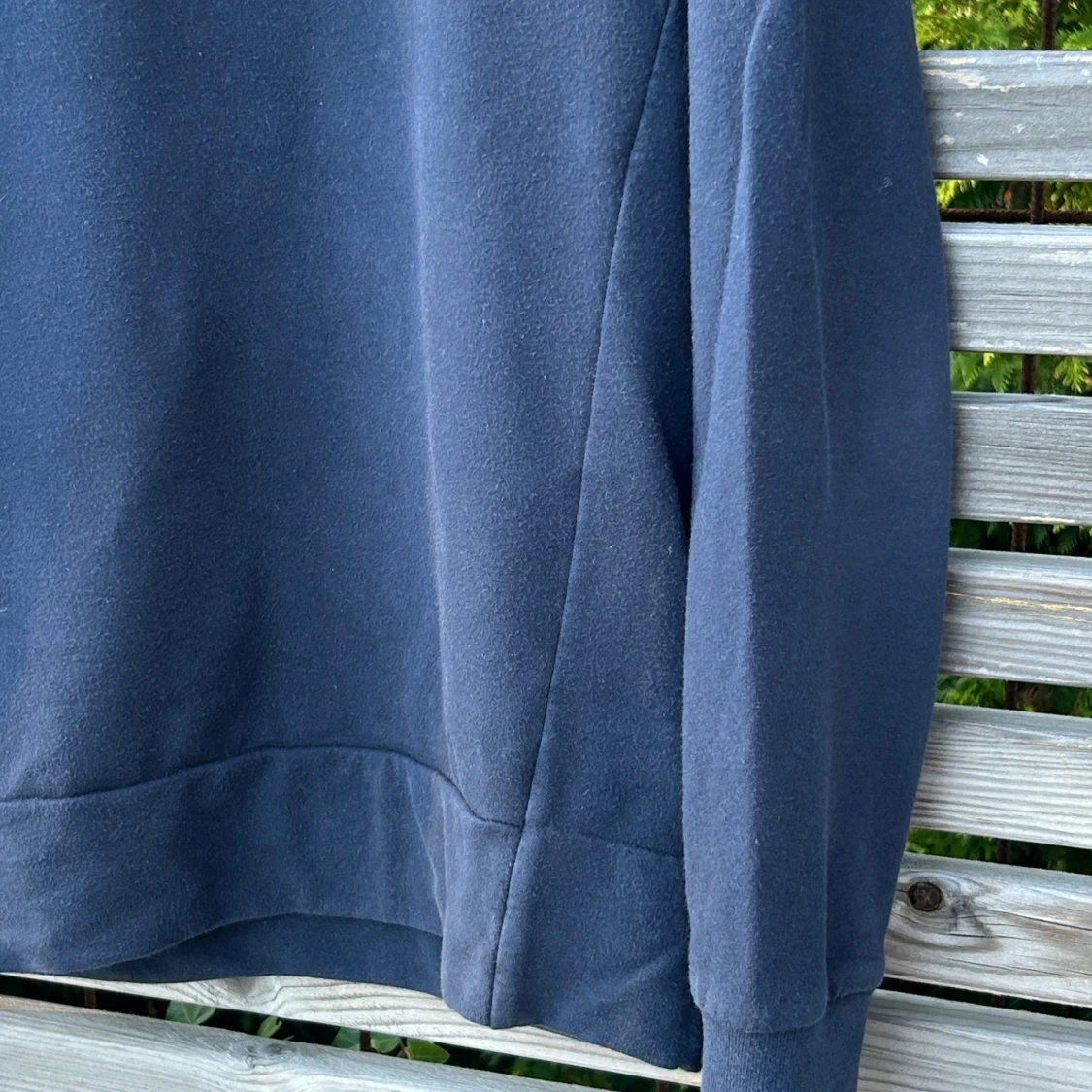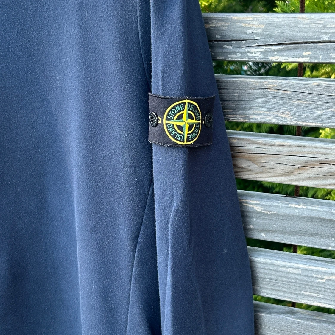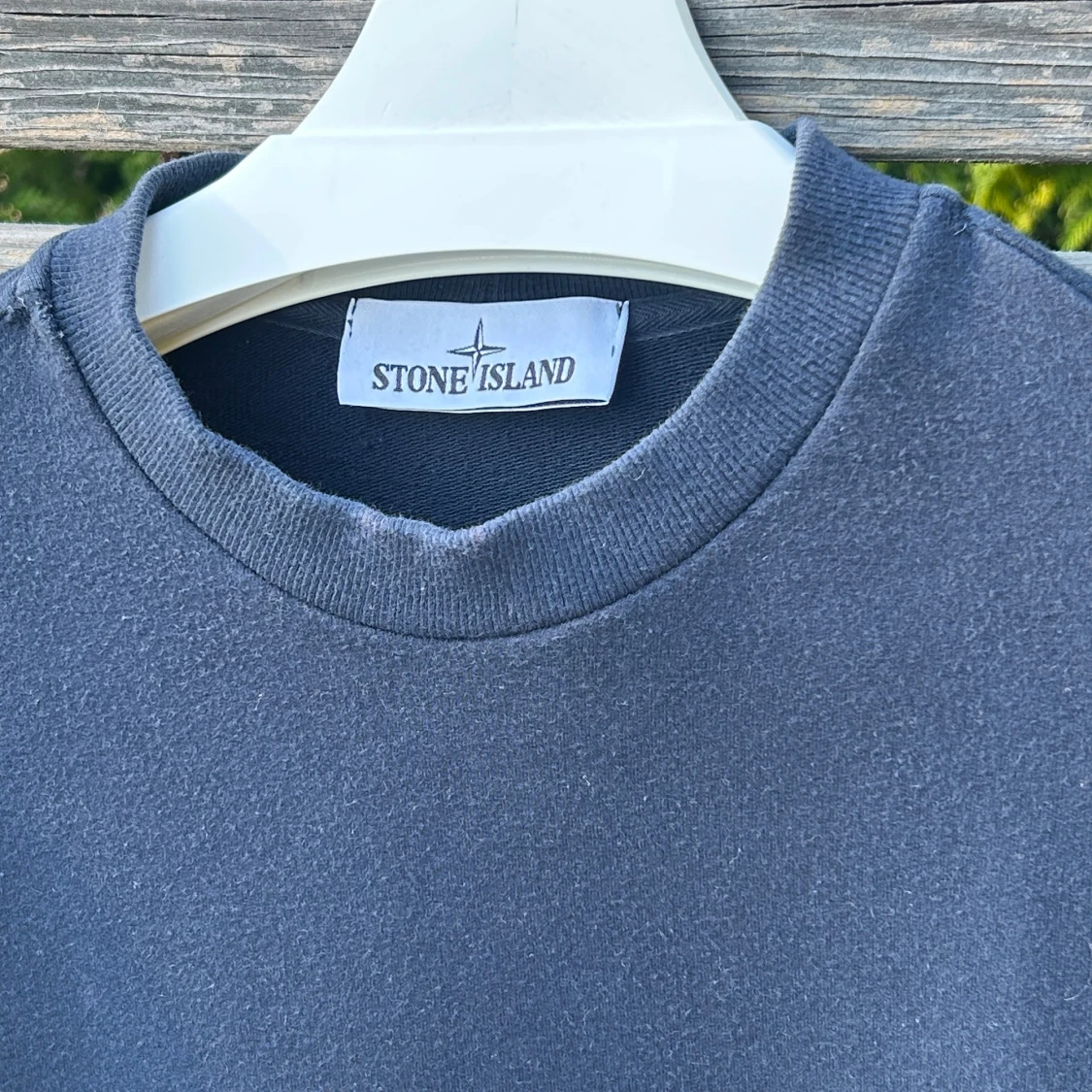 Mörkblå sweatshirt från Stone Island med klassisk rund hals och ikonisk patch på vänster ärm. Tröjan har en clean look och är tillverkad i mjuk bomull. Sicket är 8,5/10 förutom sista bilden då den blivit missfärgad ⚠️