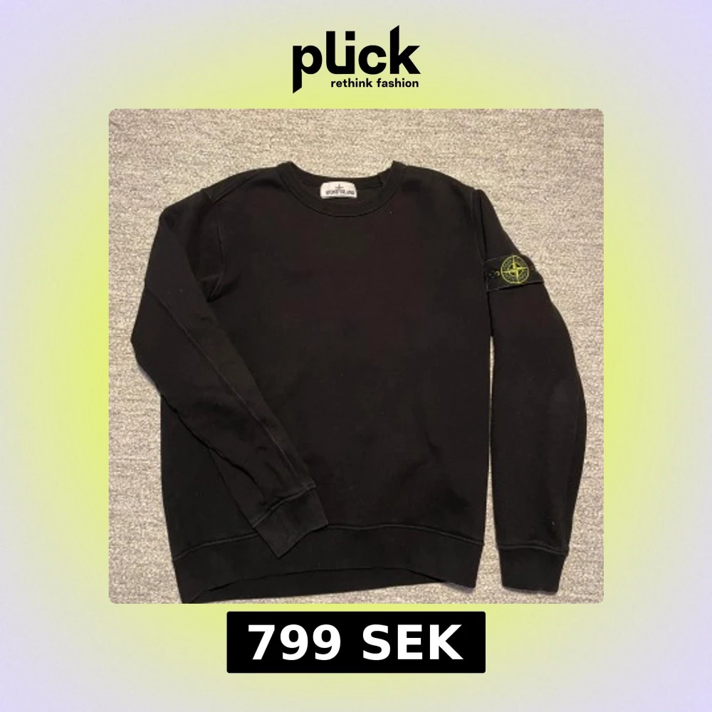 Säljer en stilren svart tröja från Stone Island med deras ikoniska märke på ärmen. Riktigt bra skick storlek S, perfekt till våren och sommarkvällar