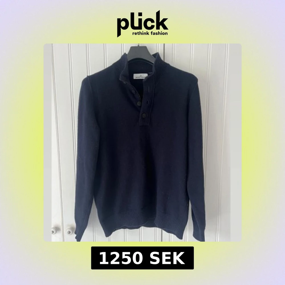 Mörkblå stickad tröja från Stone Island med klassisk logga på ärmen. Sjukt bra skick storlek XL men passar lätt L. Har typ använt den Max 3 gånger.