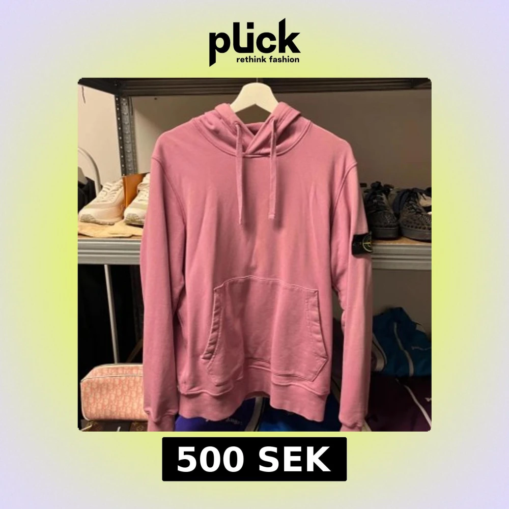 Säljer en mjuk och bekväm rosa hoodie med en stor ficka framtill och justerbar huva. Perfekt för en avslappnad stil. Den har en svart etikett på ärmen som ger en cool detalj.