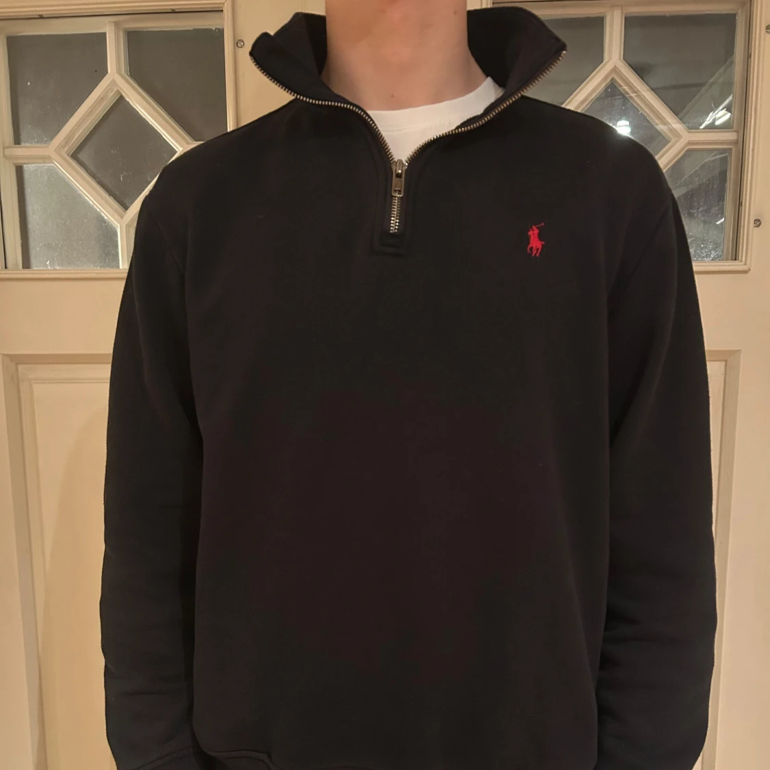 Tja! Säljer nu min fina Ralph Lauren Quarter Zip. Passar till de mesta outfitsen och sammanhang. Fint skick, inga skavanker eller defekter som jag är medveten om. Denna modellen kommer även med fickor vilket är väldigt händigt! Skriv om frågor!