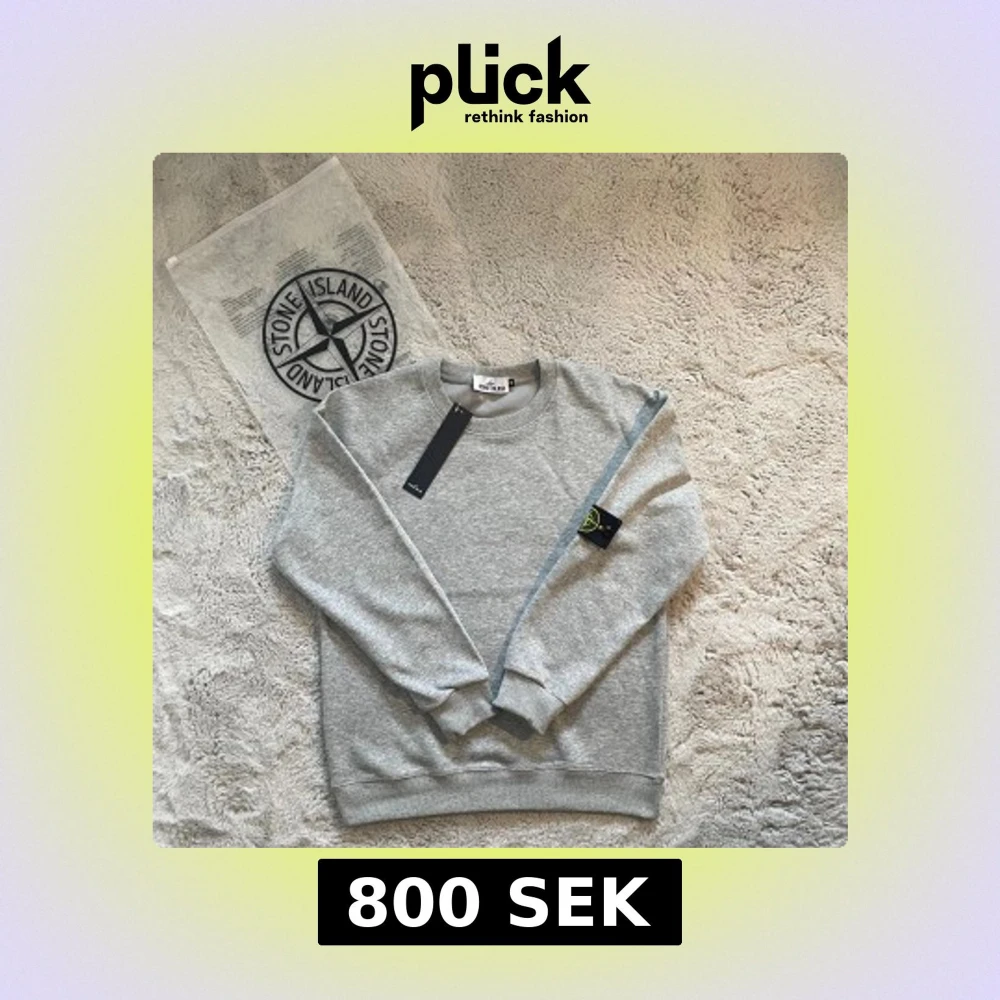 Snygg grå sweatshirt från Stone Island med klassisk rund hals och ribbade muddar. Tröjan har den ikoniska Stone Island-patchen på vänster ärm i svart, gult och grönt. Tillverkad i mjuk bomull för skön komfort och stilren look. Skick: oanvänd