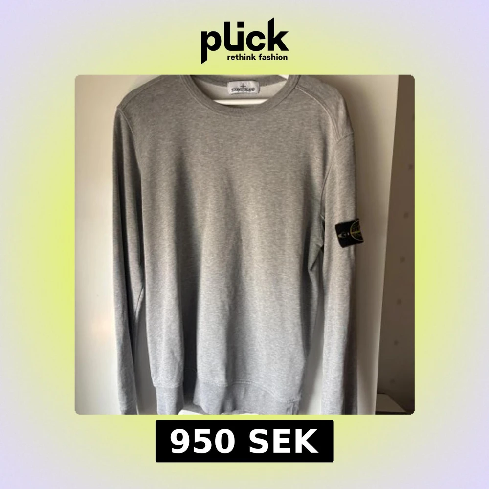 Snygg grå sweatshirt från Stone Island med klassisk rund hals och lång ärm. Tröjan har den ikoniska loggan på vänster ärm Perfekt för en clean och stilren look. Alla lappar finns kvar för att scanna och bekräfta äktheten ✅