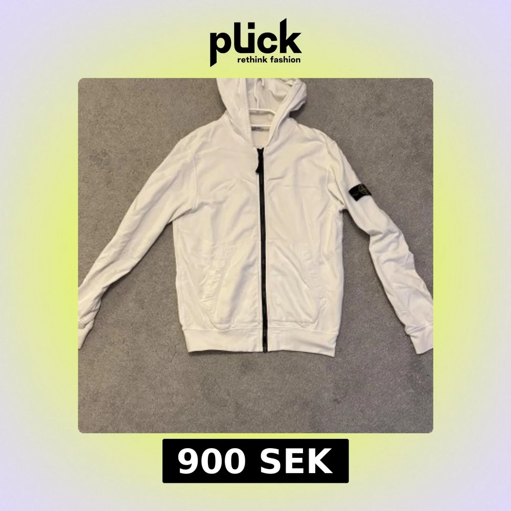 Vit hoodie från Stone Island med svart dragkedja. Den är i storlek XS/S och passar ca 165-170.