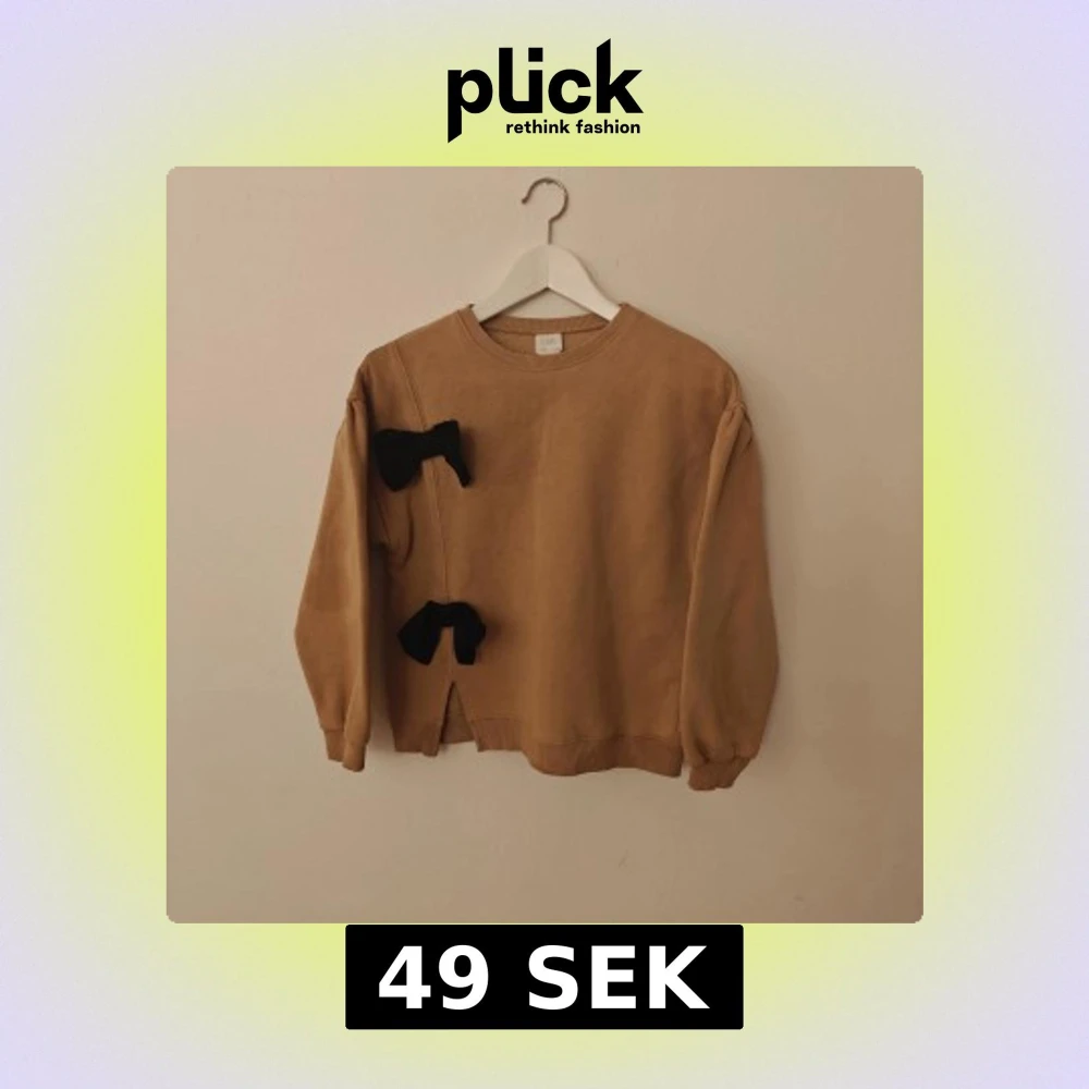 Beige sweatshirt från Zara med två stora svarta rosetter framtill. Tröjan har rund hals, långa ärmar med lätt puff och ribbade muddar. Mjuk insida och liten slits nertill. Perfekt för dig som gillar unika detaljer!