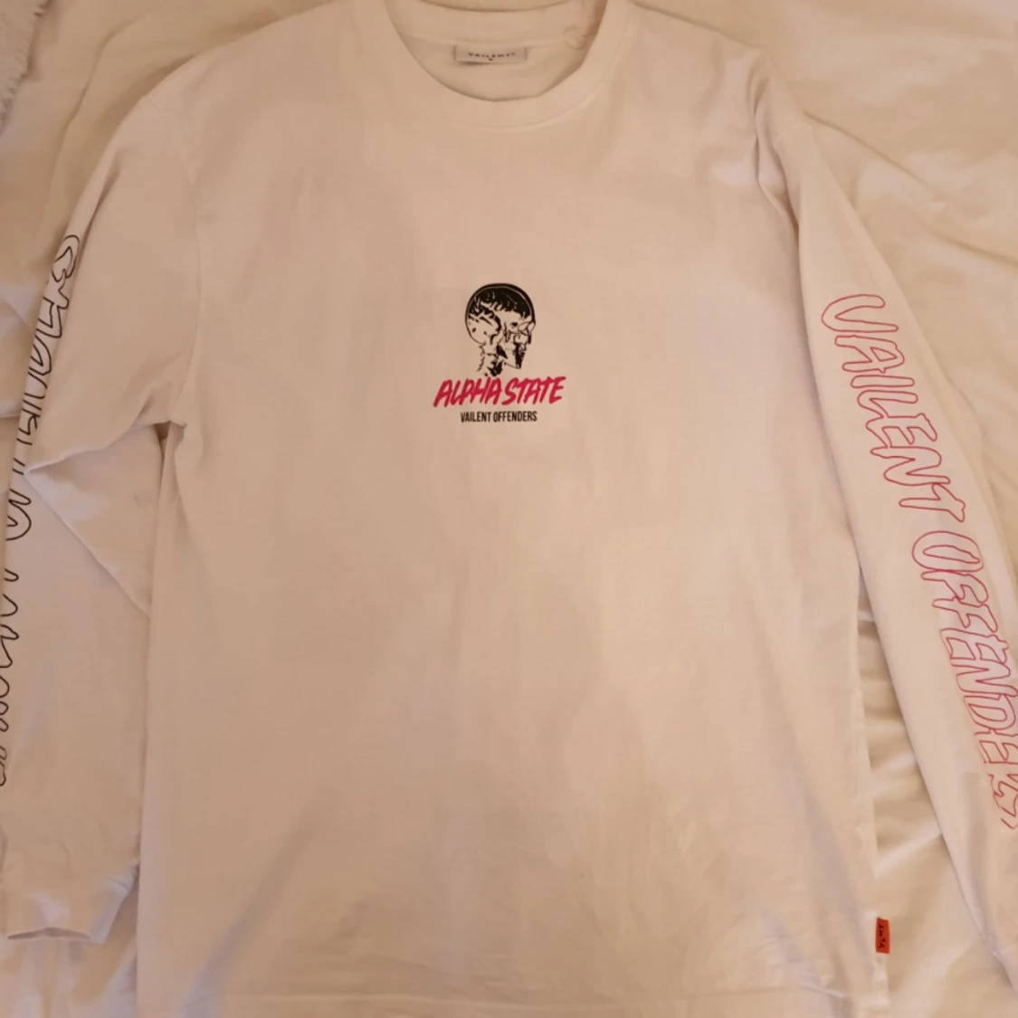 Säljer en super cool långärmad tröja med stort tryck på ryggen. Köpt på carlings. Bra skick! Kan mötas i stockholm eller frakta för 40kr😊
