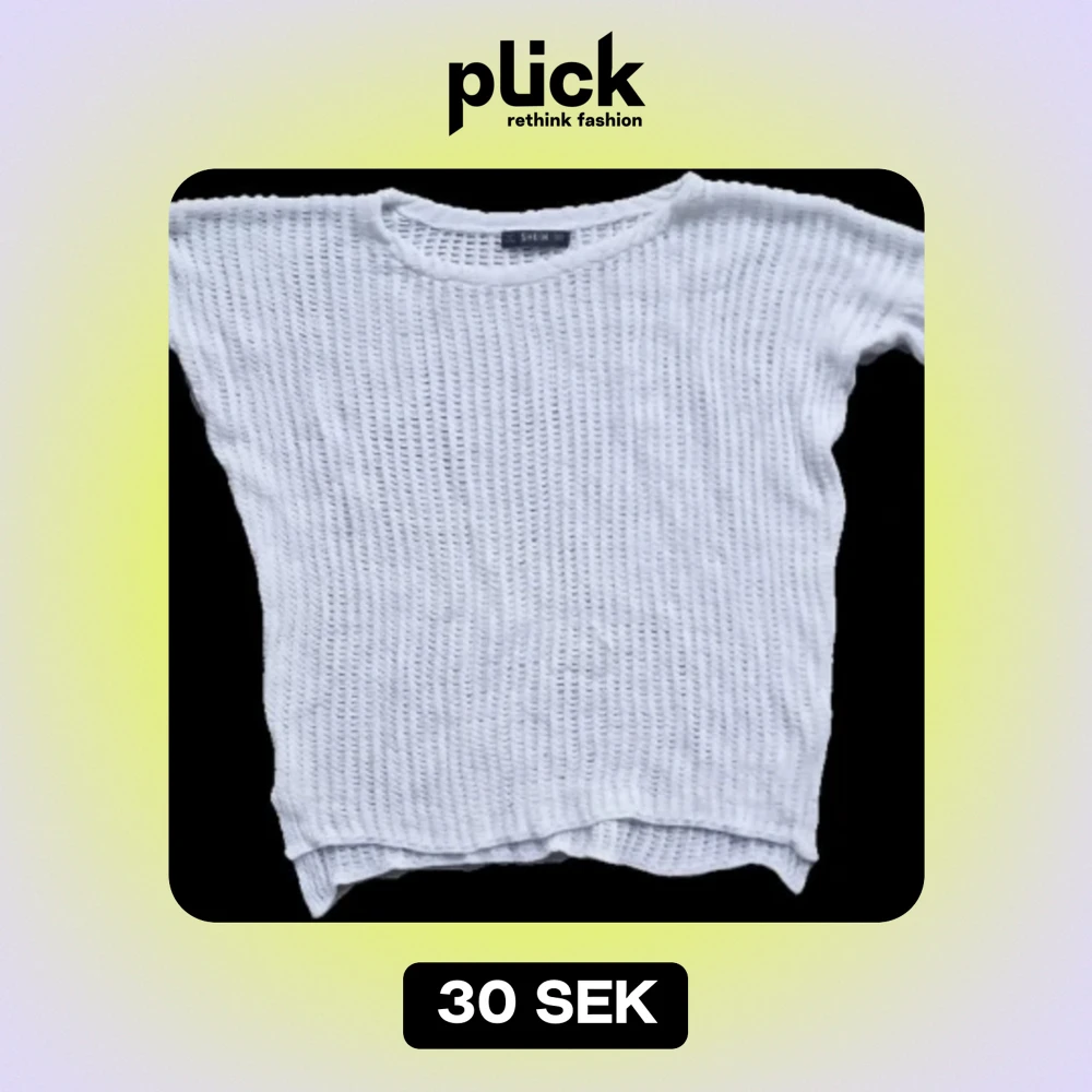 En vit topp av 100% akryl från shein. Passar bra att ha över en bikini på stranden. Längst ner på vardera sida är det korta sitsar.