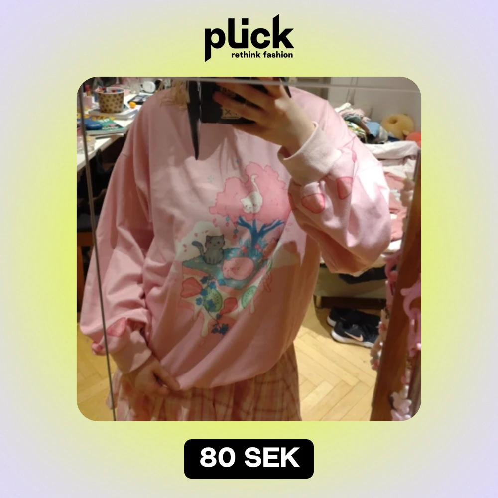 Supersöt rosa tröja med ett jättegulligt tryck på! Bara använd några få gånger och jättebekväm💞🎂