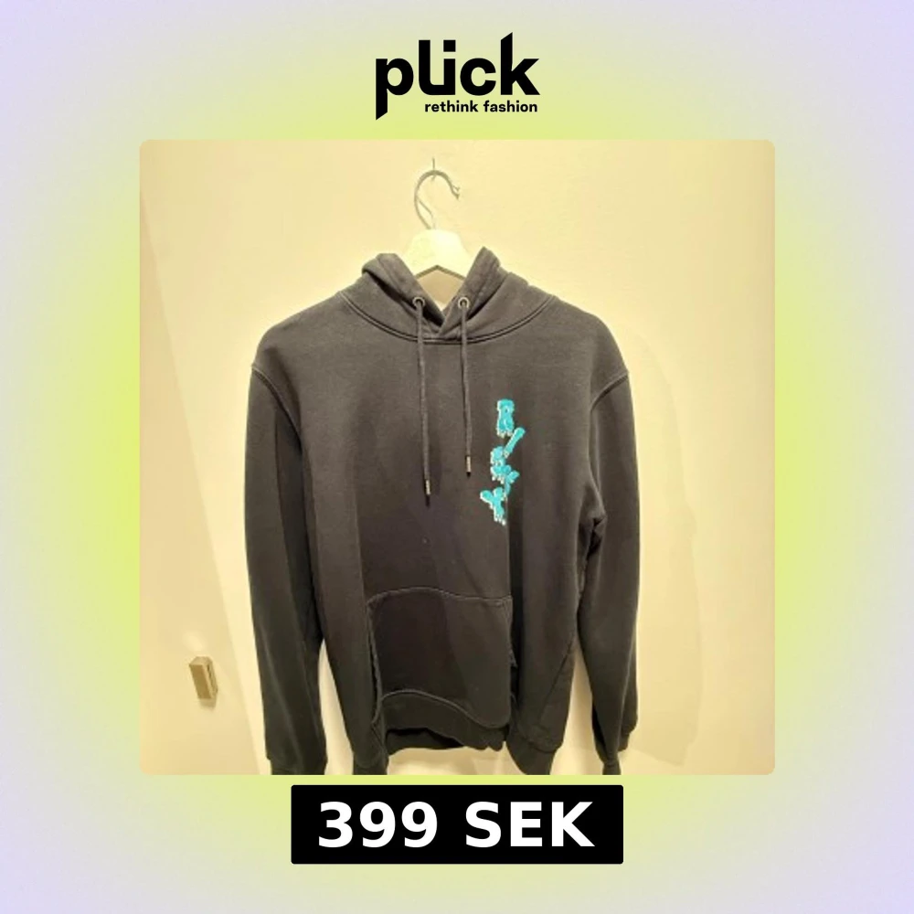 Svart hoodie från Risky med blått tryck på bröstet. Perfekt för dig som gillar streetwear och vill ha en chill look. Jag säljer då stilen inte riktigt passar mig och tröjan är använd väldigt få gånger