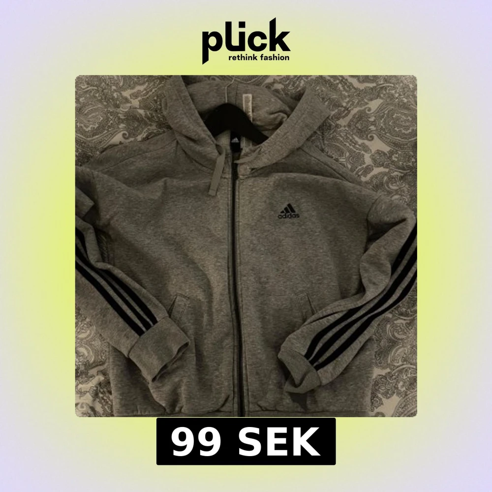 Säljer en grå hoodie från Adidas med dragkedja skit snygg storlek S