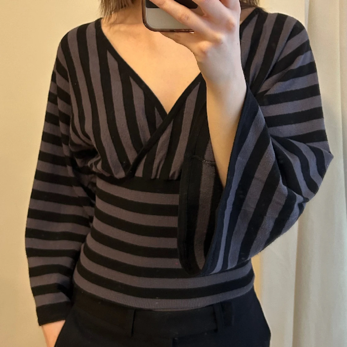 Randig tröja med vida ärmar som passar både till vardag och fest. Stretchig och skön.