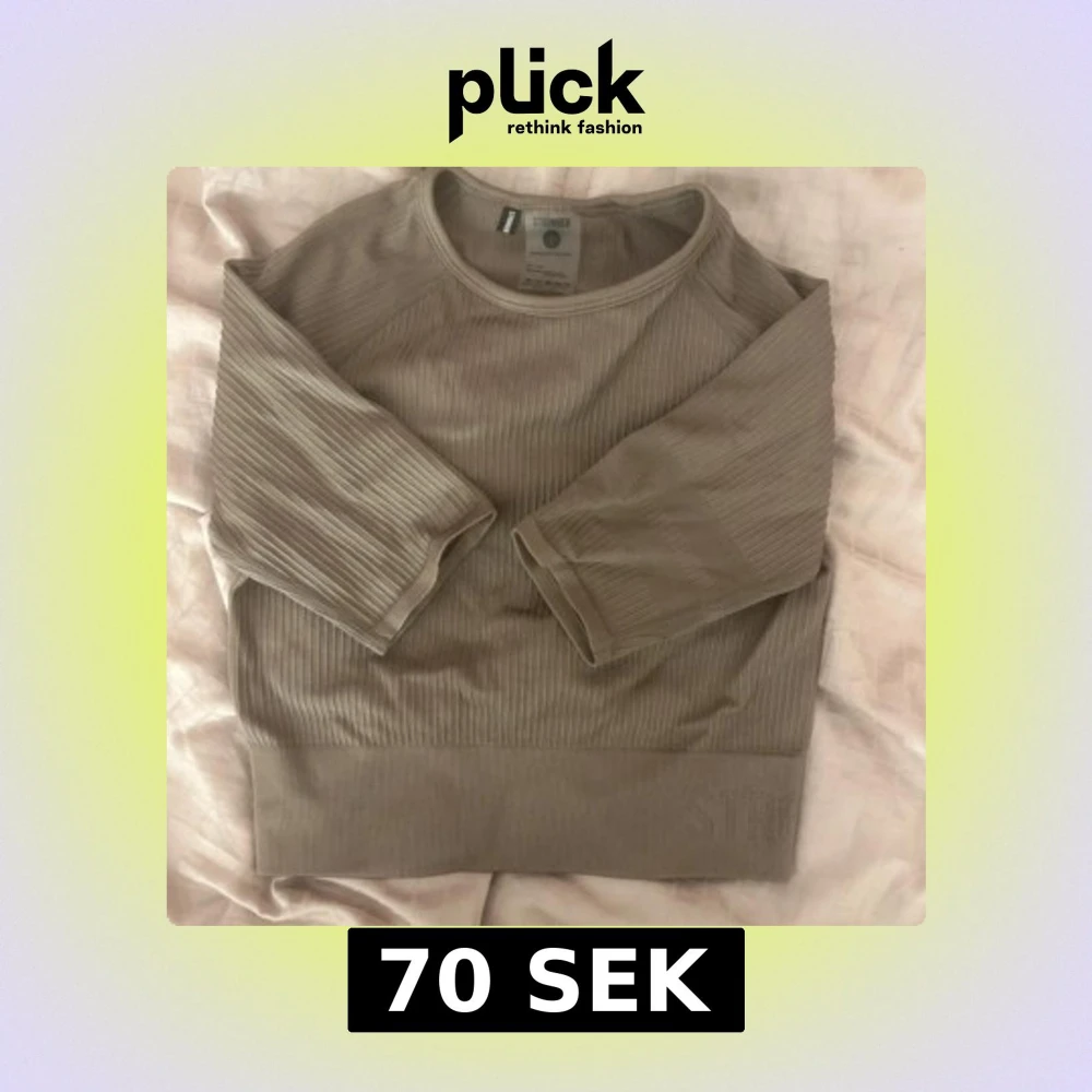 Snygg beige ribbad tröja från Stronger med trekvartsärm och rund hals. Tröjan har ett diskret broderat Stronger-logo på nederkanten och är gjord i mjuk polyester som känns skön mot huden. Perfekt för chill eller träning.