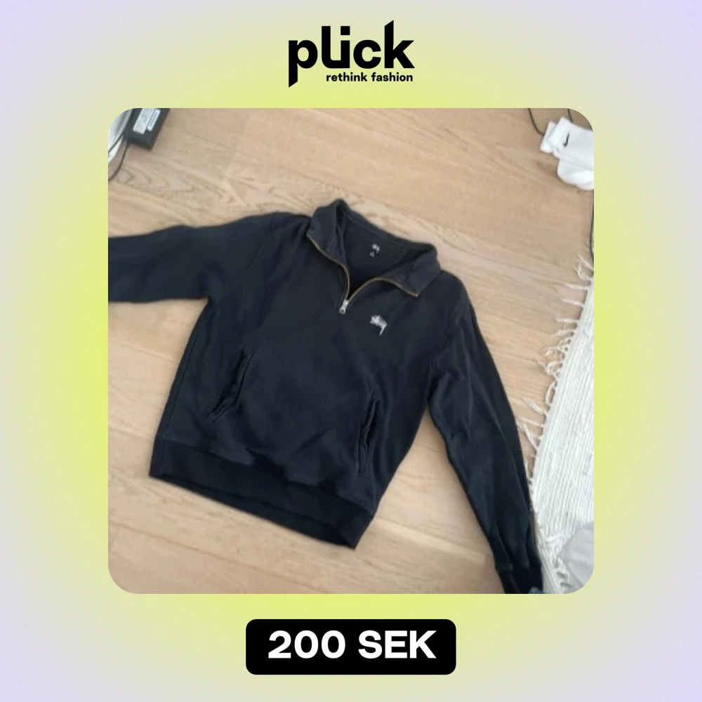 En Stussy tröja i storlek s, inte i så jätte bra, skick lite skrynklig runt fickan. Me inga defekter.