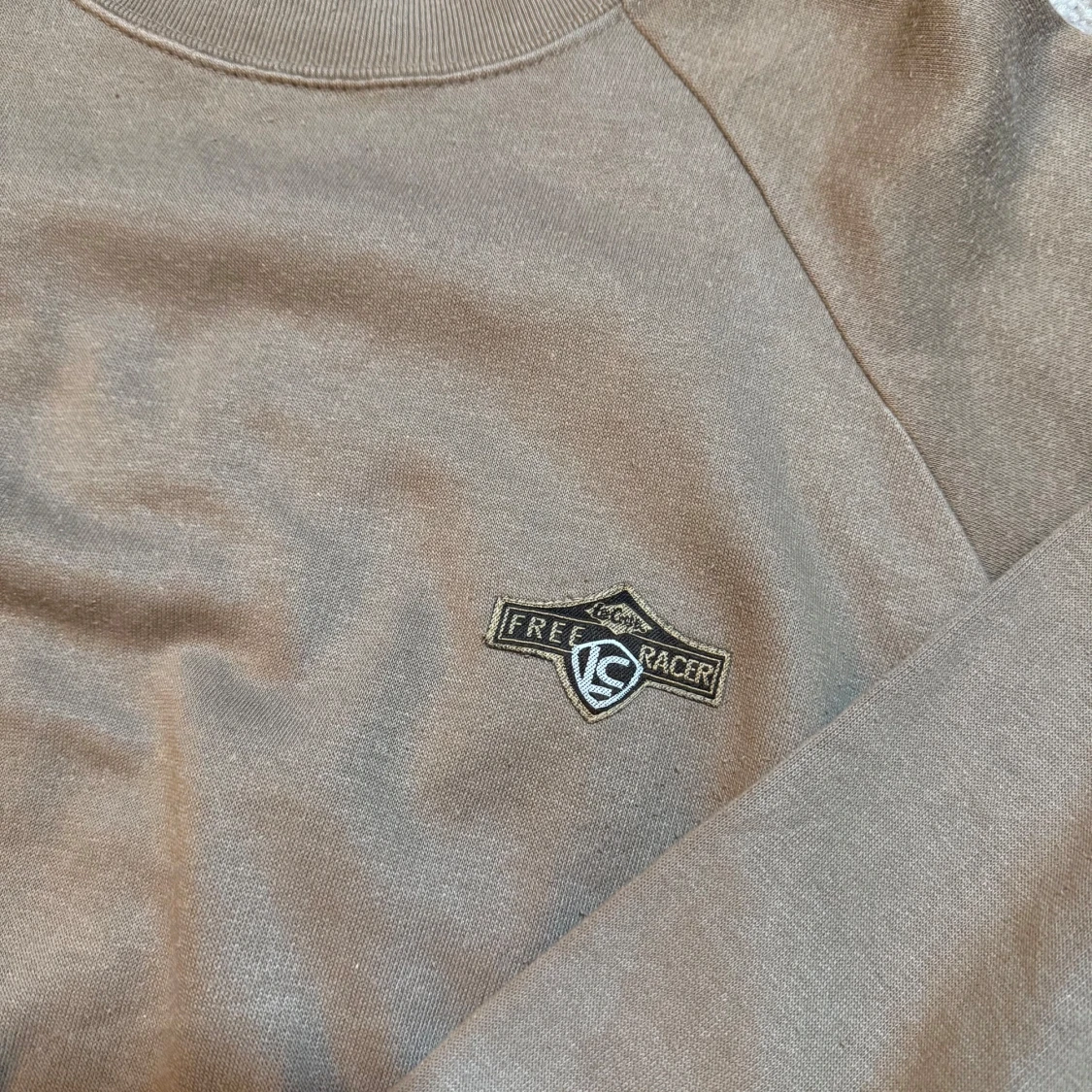 Säljer en stilren beige sweatshirt från Free Racer med ett litet broderat märke på bröstet. Tröjan har långa ärmar och en klassisk rund halsringning. Perfekt för en avslappnad look.