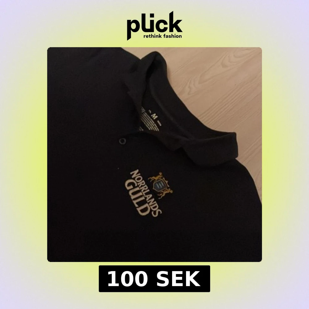 Mörkblå pikétröja med klassisk krage och två knappar framtill. Broderad Norrlands Guld-logga i vitt, blått och guld på bröstet. Storlek M. Skick 8/10. Skriv vid minsta fundering!