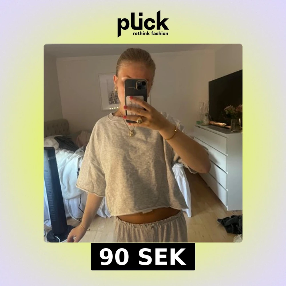 Grå croppad tröja från Zara med loose fit och korta ärmar. Tröjan har rund halsringning och är gjord i mjuk bomull. Köpte för ca ett år sen andvänd få gånger. Nypriset är 179.