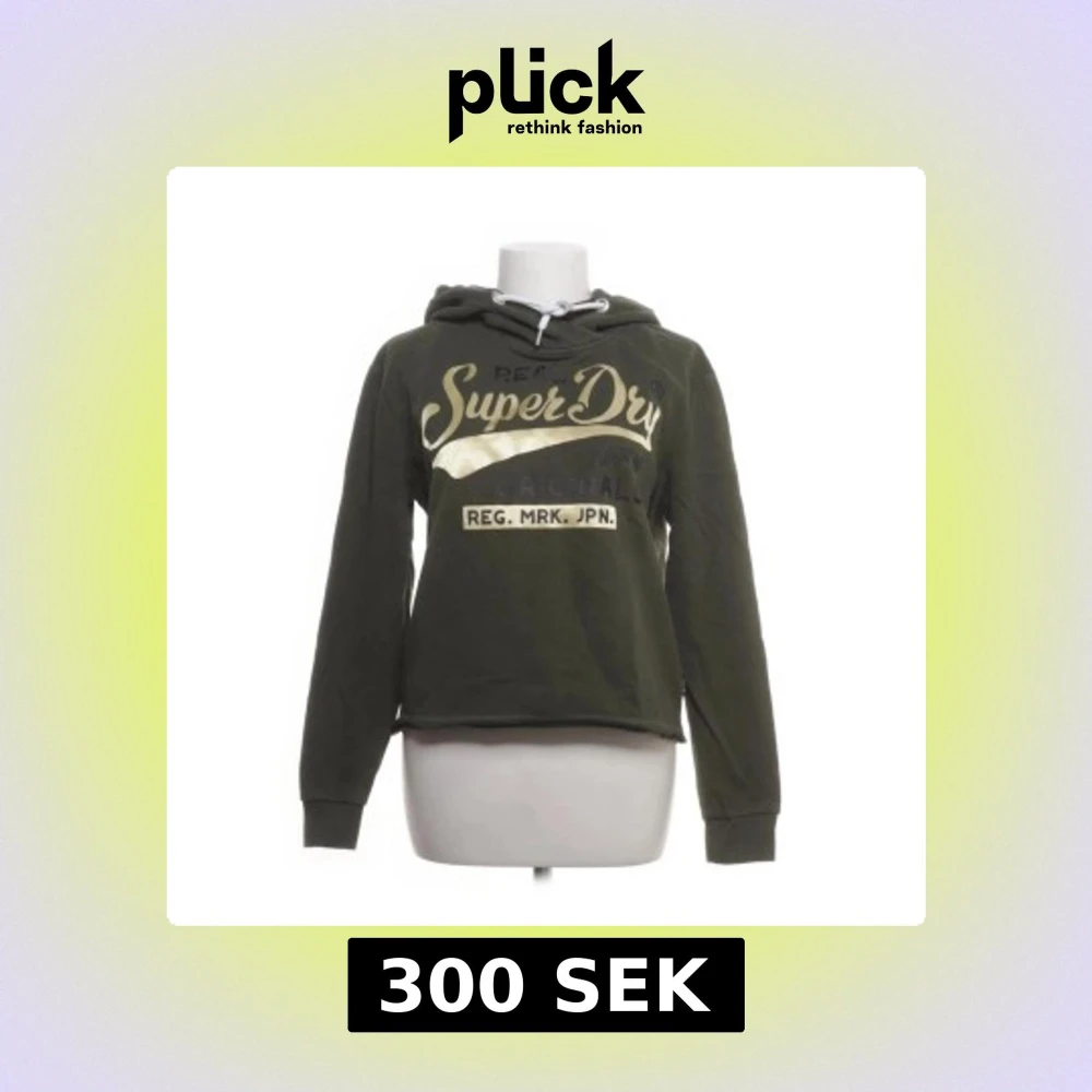 Snygg olivgrön hoodie från Superdry med tryck i beige och vitt framtill. Perfekt för en avslappnad och cool stil. Mjukt material och långa ärmar.